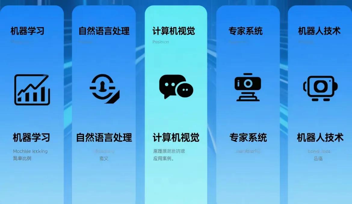 自然语言处理 • 定义:研究让计算机理解和处理人类自然语言的技术。 • 主要任务:包括词法分析(如将句子拆分成单词)、句法分析(分析句子的语法结构)、语义理解(理解文本的含义)、文本生成(根据给定信息生成自然语言文本)等。 • 举例:智能客服系统能理解用户咨询的问题,通过词法和句法分析,结合知识库进行语义理解,然后生成合适的回答。在机器翻译中,先对源语言进行词法、句法和语义分析,再根据目标语言的语法和习惯生成翻译后的文本。像谷歌翻译能将多种语言的文本准确翻译,方便不同语言的人交流。 计算机视觉 • 定义:让计算机模拟人类视觉系统,感知和理解图像及视频中的内容。 • 关键技术:有图像识别(识别图像中的物体类别)、目标检测(定位图像中的物体并识别其类别)、图像分割(将图像分割成不同区域,每个区域对应一个物体或物体的一部分)等。 • 举例:在安防监控中,通过目标检测技术实时监测画面中的人员和物体,一旦发现异常行为或特定目标,立即发出警报。在医疗影像分析中,计算机视觉可对X光、CT等影像进行图像分割和识别,辅助医生检测肿瘤等病变,提高诊断的准确性和效率。 专家系统 • 定义:基于特定领域专家知识构建的程序系统,模拟专家解决问题的思维过程。 • 组成:包括知识库(存储领域专家知识)、推理机(根据输入信息和知识库进行推理得出结论)、人机接口(方便用户与系统交互)等。 • 举例:在地质勘探中,专家系统根据地质数据、岩石样本信息等,利用知识库中的地质知识和勘探经验,推理出可能存在矿产资源的区域,为勘探人员提供决策支持。在农业病虫害诊断中,农民输入农作物的症状和生长环境等信息,专家系统依据病虫害知识和诊断规则,判断出农作物可能患的病虫害,并给出防治建议。 机器人技术 • 定义:融合机械工程、电子技术、计算机科学和AI等多学科知识,使机器人能感知环境、进行决策并执行任务。 • 类型:有工业机器人、服务机器人、医疗机器人、军事机器人等。 • 举例:工业机器人广泛应用于汽车制造等行业,能精确完成焊接、喷涂、装配等工作,提高生产效率和产品质量。服务机器人如家庭清洁机器人,通过传感器感知环境,利用AI算法规划清洁路径,自动打扫房间。医疗机器人可辅助医生进行手术,如达芬奇手术机器人,能在狭小空间内进行高精度操作,减少手术创伤。