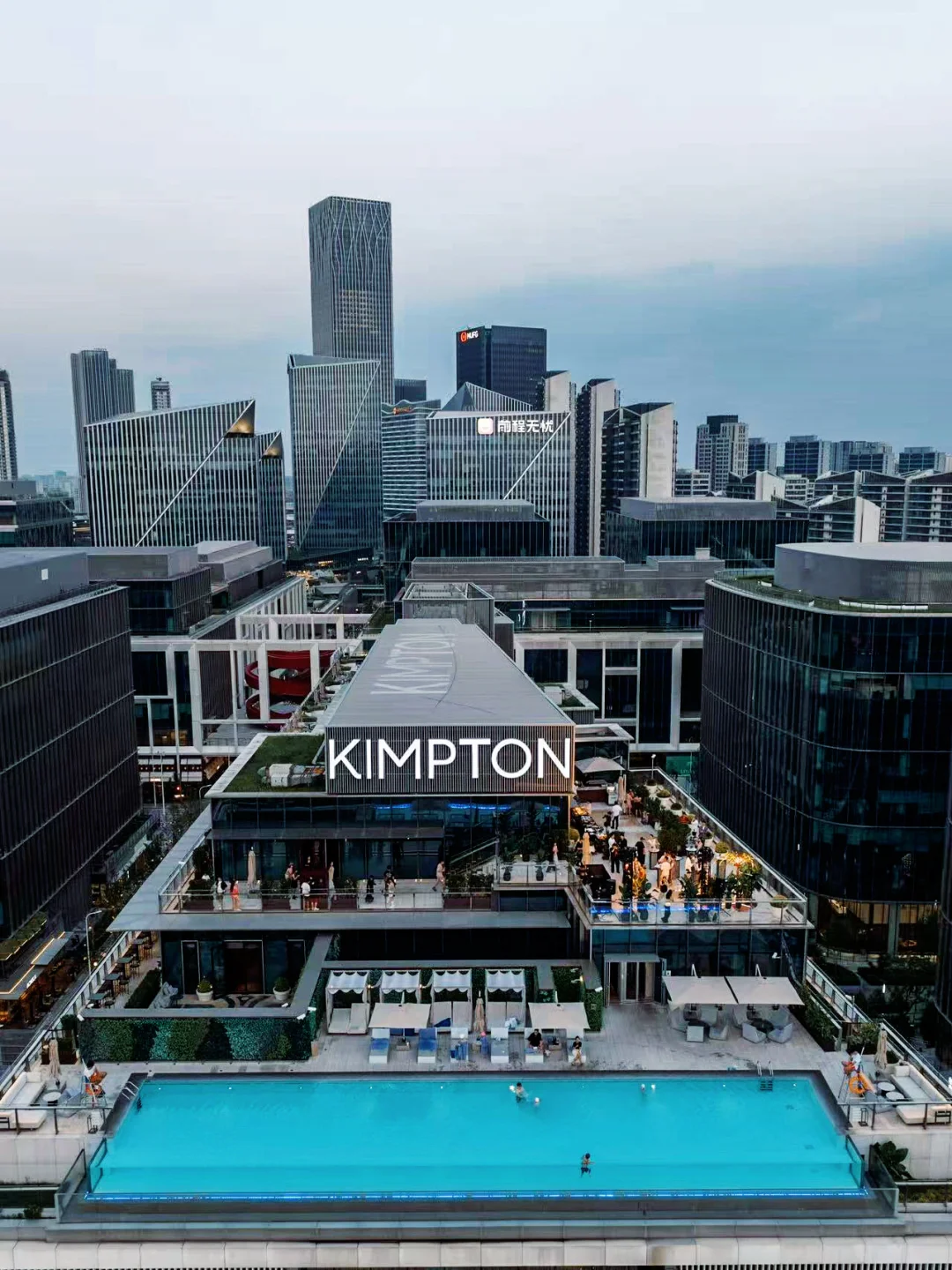 前滩的灯光正从金普顿酒店的顶楼打下