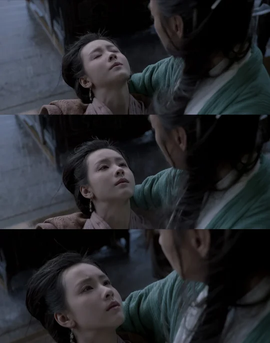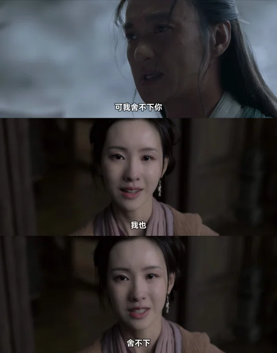 药衡对细节呈现,如顶级绣工穿针引线般精细。以跳崖的两场戏为例,药衡初见,冯衡滚落悬崖,药师练完功后相救,纵身而起,凌虚而行,闲庭信步,宛若谪仙临世,空寂之境是他的归途,他救人,只是心念一动,他不打算为任何人停下。冯衡第二次跳崖,药师先是红了眼,泪珠滚落,跟着冯衡跳下如急掠而下的鹰,接住冯衡后力道放缓,落地时却有一种轻盈感,未及时解毒的阿衡睁眼时已不识得眼前人,力度的对比是情意的直接呈现:药师流泪,已是心神大震;冯衡跳崖后接住她,是早将生死置之度外;心上人中毒后忘了自己,既是爱意的凭空抹平,也是自我存在的暂时消亡,肝肠寸断,便是如此,恨不可怕,可怕的是忘记、无感。