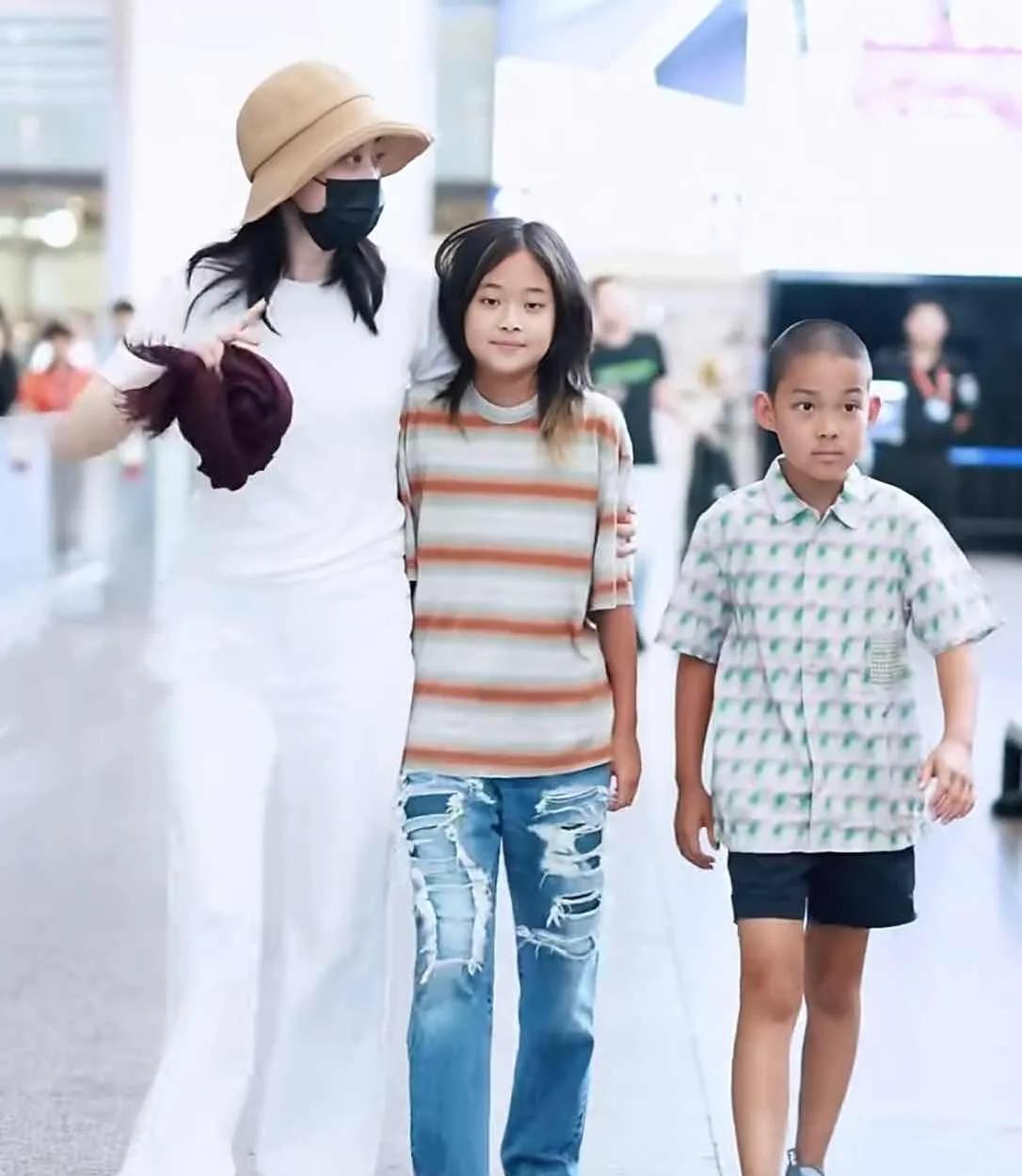 梅婷一家四口露面。女儿跟她长得简直一模一样。不知道她的重男轻女还严重吗?