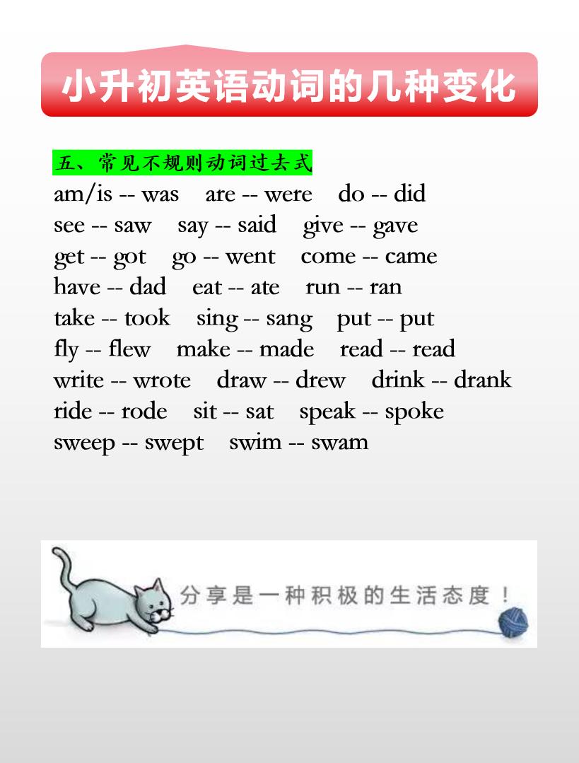 小升初要掌握的英语动词变化!英语 小学英语 小升初 英语语法