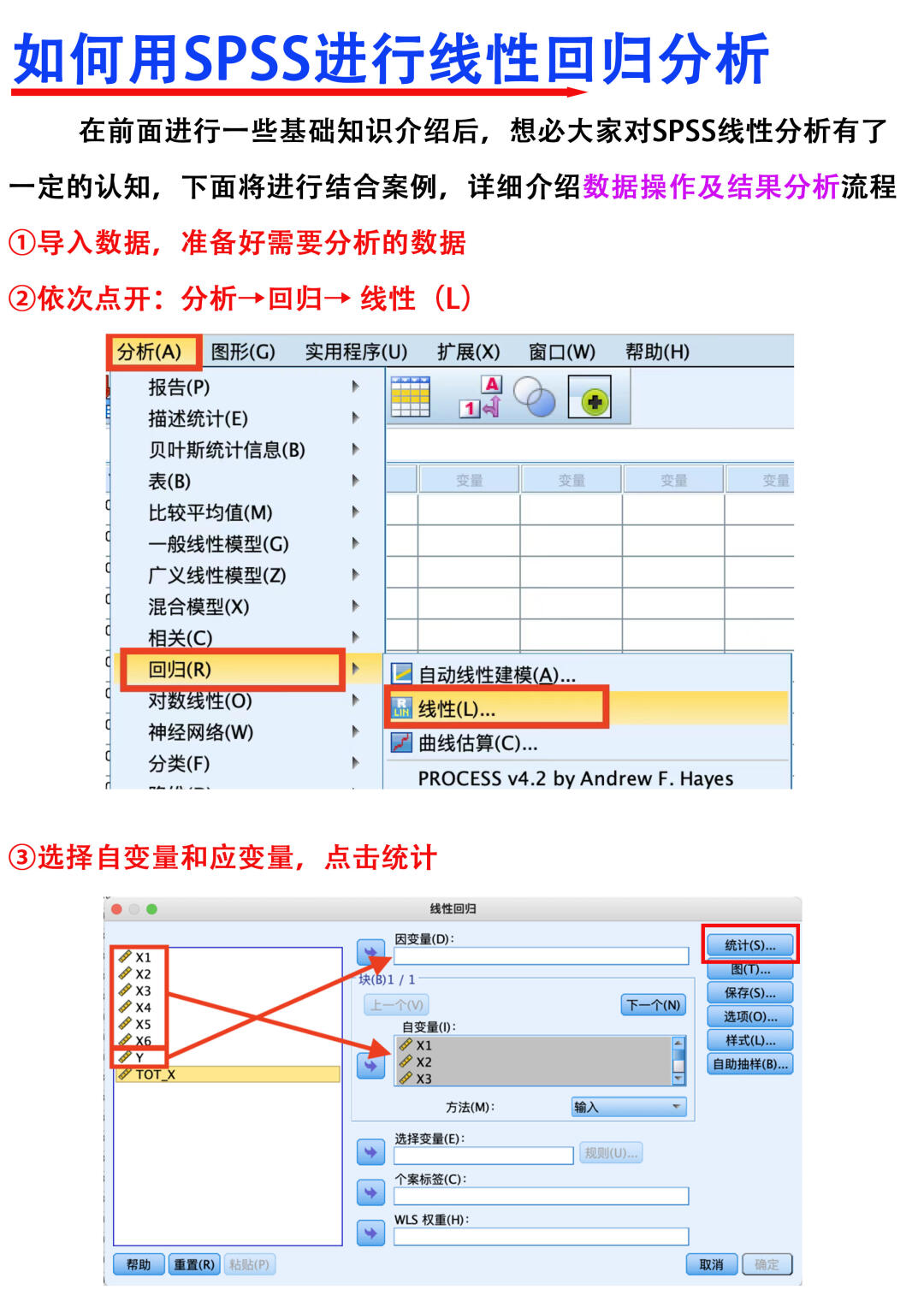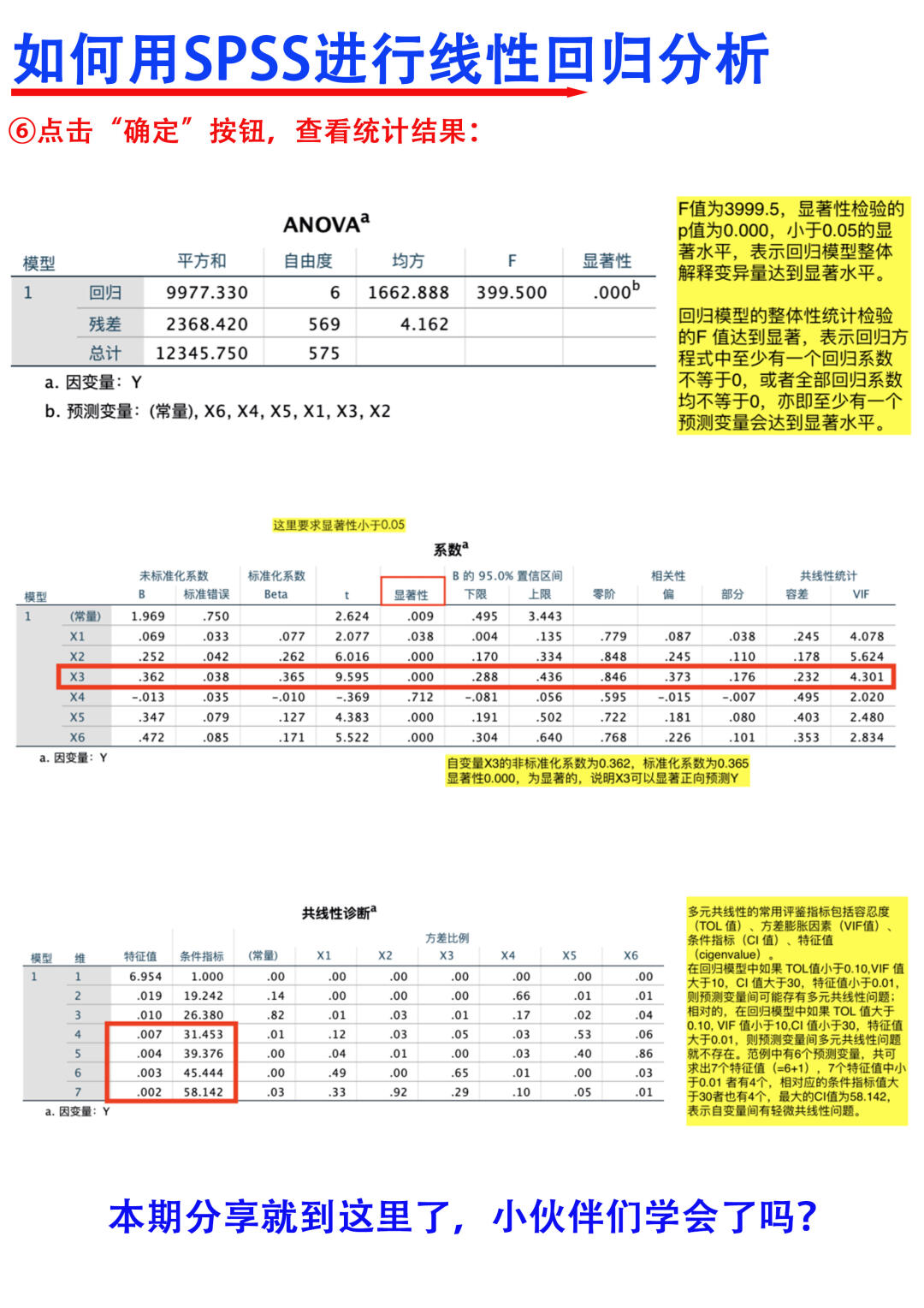 Hi~ 大家晚上好,我是科研废物,一名喜欢分享原理的科研博主[蹲后续H] [萌萌哒R]本期跟大家分享的是,如何用SPSS进行线性回归分析 [向右R]主要从以下两个个方面进行分享 1⃣️基础知识分享 2⃣️数据c作及结果分析 满满的干货与tips ,欢迎大家👍收藏,一起交流讨论呀