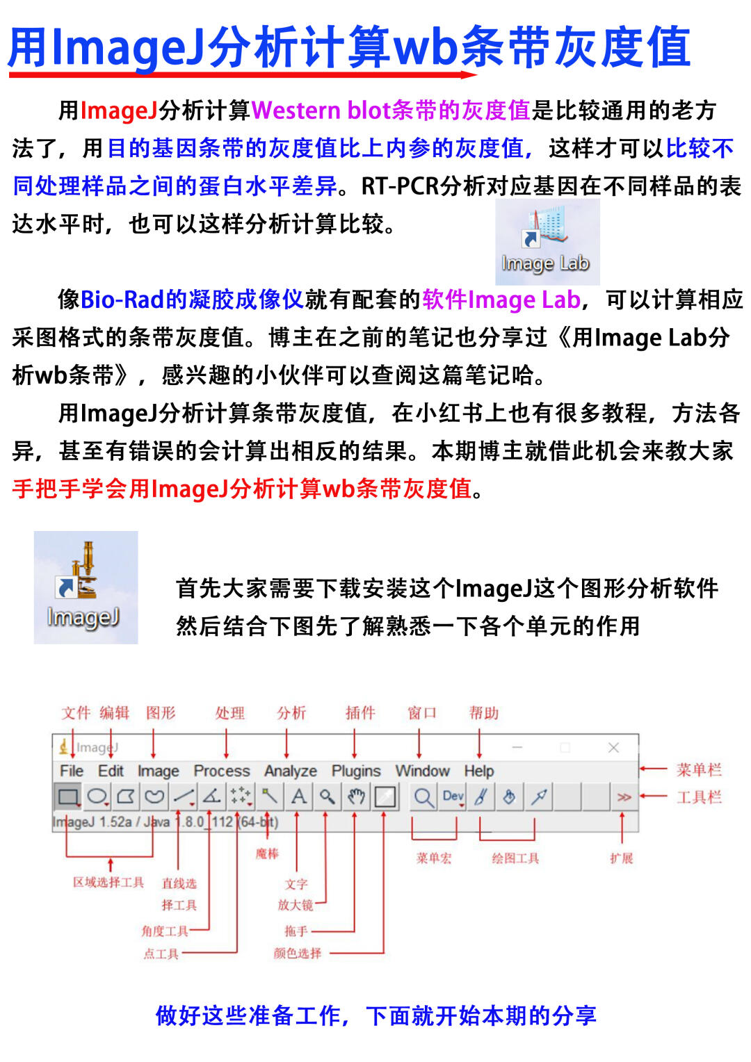 [飞吻R]Hi~小伙伴们,大家晚上好,我是科研废物,一名喜欢分享干货的科研博主[种草R] 本期跟大家分享的是如何用ImageJ分析计算wb条带灰度值,内容比较干,欢迎大家👍收藏,一起讨论交流呀