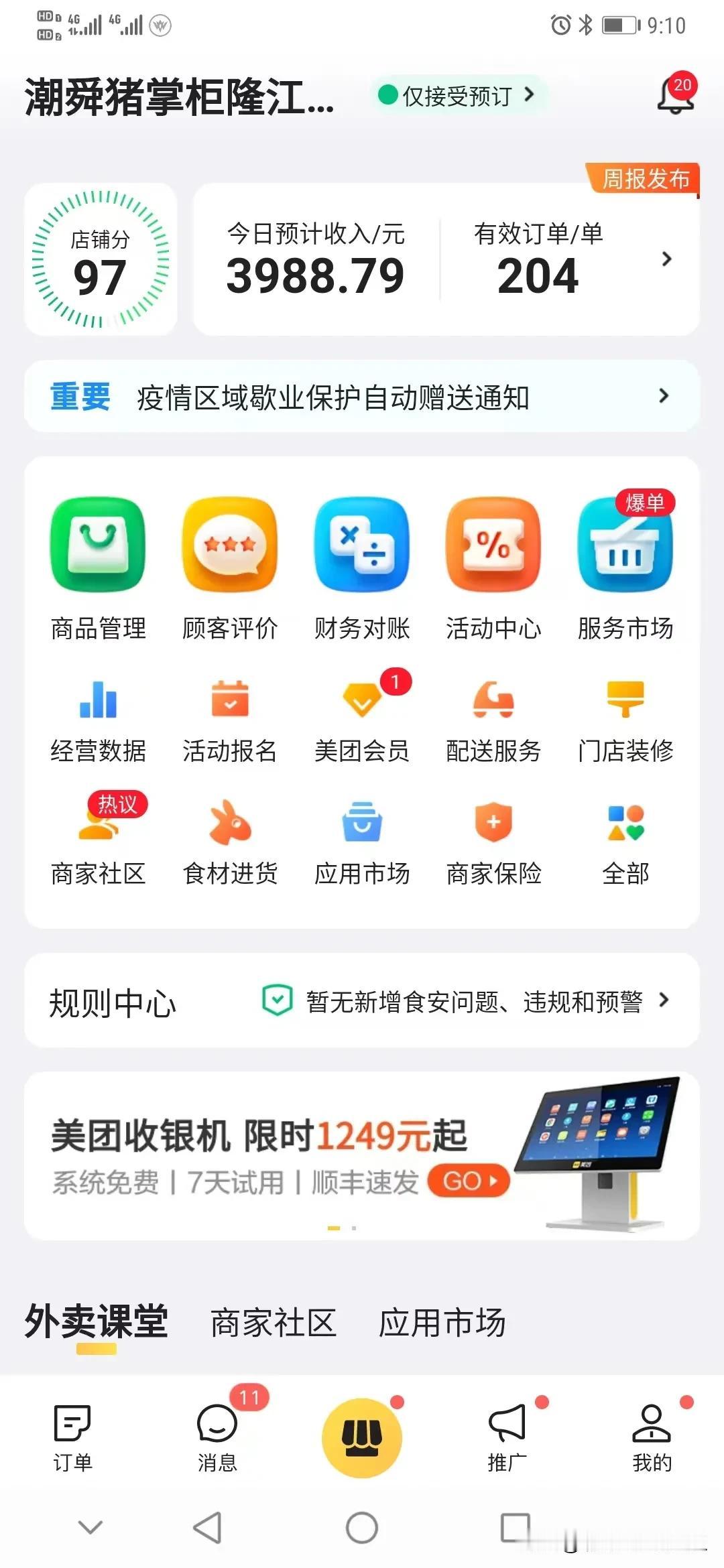 别再说外卖不赚钱了! 广州白云猪掌柜猪脚饭店,之前每天200单,毛利35%,因为转化率极高,餐品直接涨价2元,掉单几天,七天后单量依然重返200单以上,只有做好出品,保持数据,前期务必配合我们的运营任务,利润是可以做增长的! 做餐饮店一定要重视外卖,如今没有运营的餐饮店很难生存了,堂食开业没多少生意,怎样做到菜品流通新鲜跟丰富度?做多了卖不完又浪费,做少了不好看,没有氛围,一般餐饮店就是这样熬不过新店期的,所以开店一定要学习运营,祝大家生意兴隆!