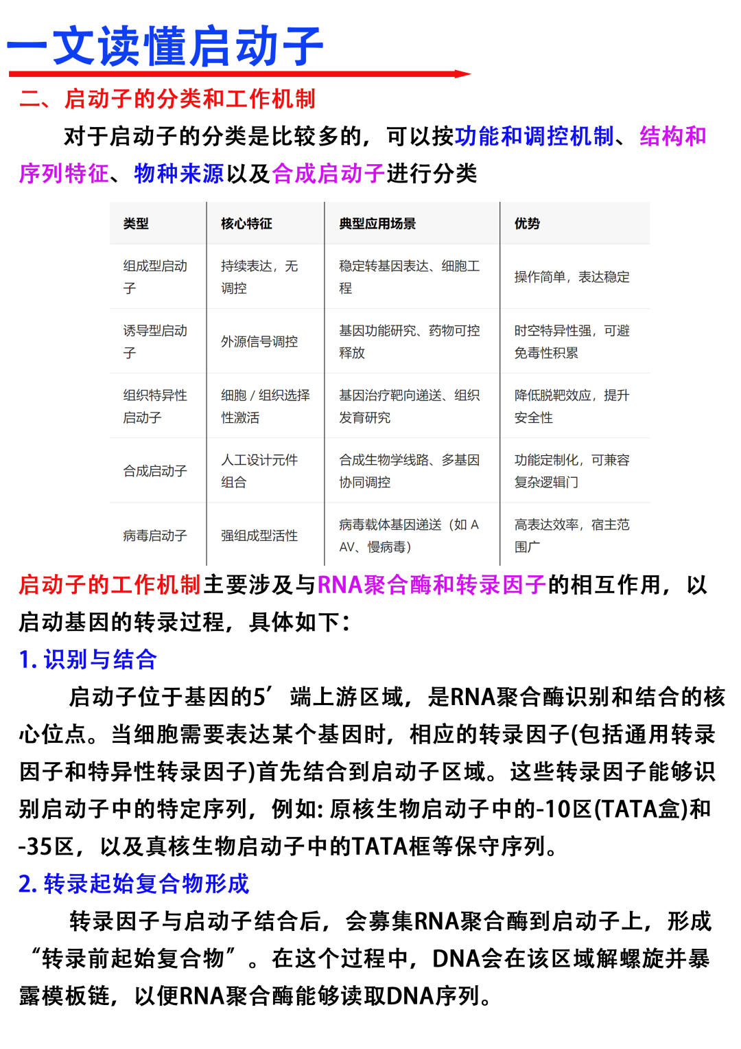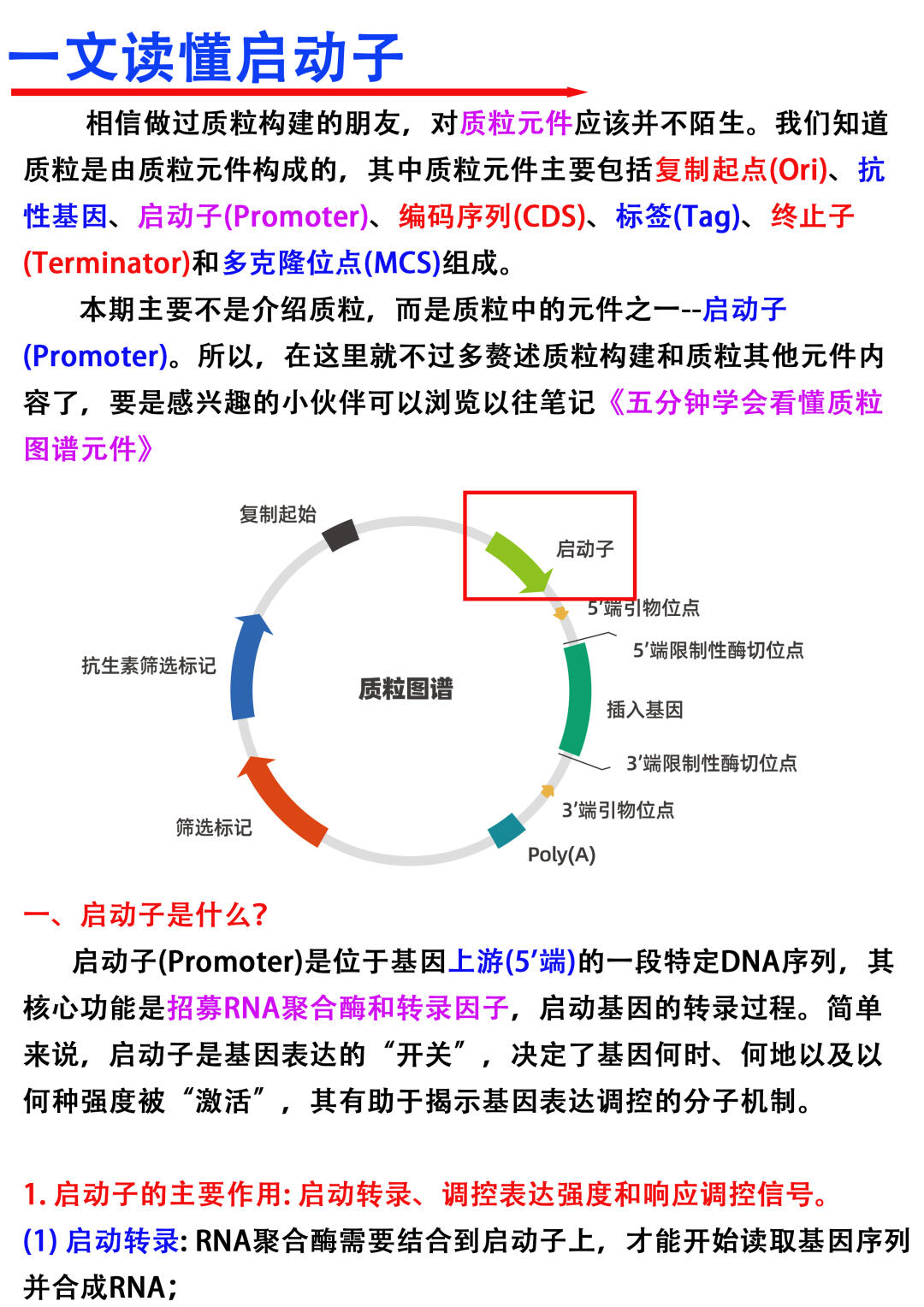 Hi~大家晚上好,我是科研废物,一名喜欢分享原理的科研博主[蹲后续H] [种草R]做了这么久的载体构建,你真的了解启动子吗?[哇R]本期给大家分享一下质粒构建中的元件-启动子 [向右R]主要从以下四个方面进行分享 1⃣️启动子是什么? 2⃣️启动子的分类和工作机制 3️⃣启动子的调控gene是哪个 4️⃣启动子区的生物学特性 满满的干货与tips ,欢迎大家👍收藏,一起交流讨论呀