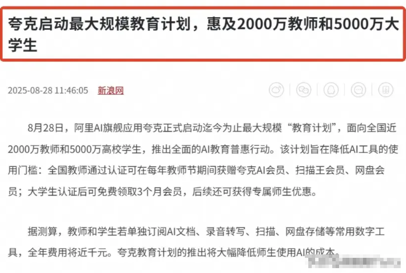 可以说,当很多人还在争论AI能否赋能教育时,夸克已经用实实在在的解决方案,让2000万教师、5000万学生感受到了智能教育的真正价值!这场静悄悄的教育革命,正在重塑我们获取知识的方式。