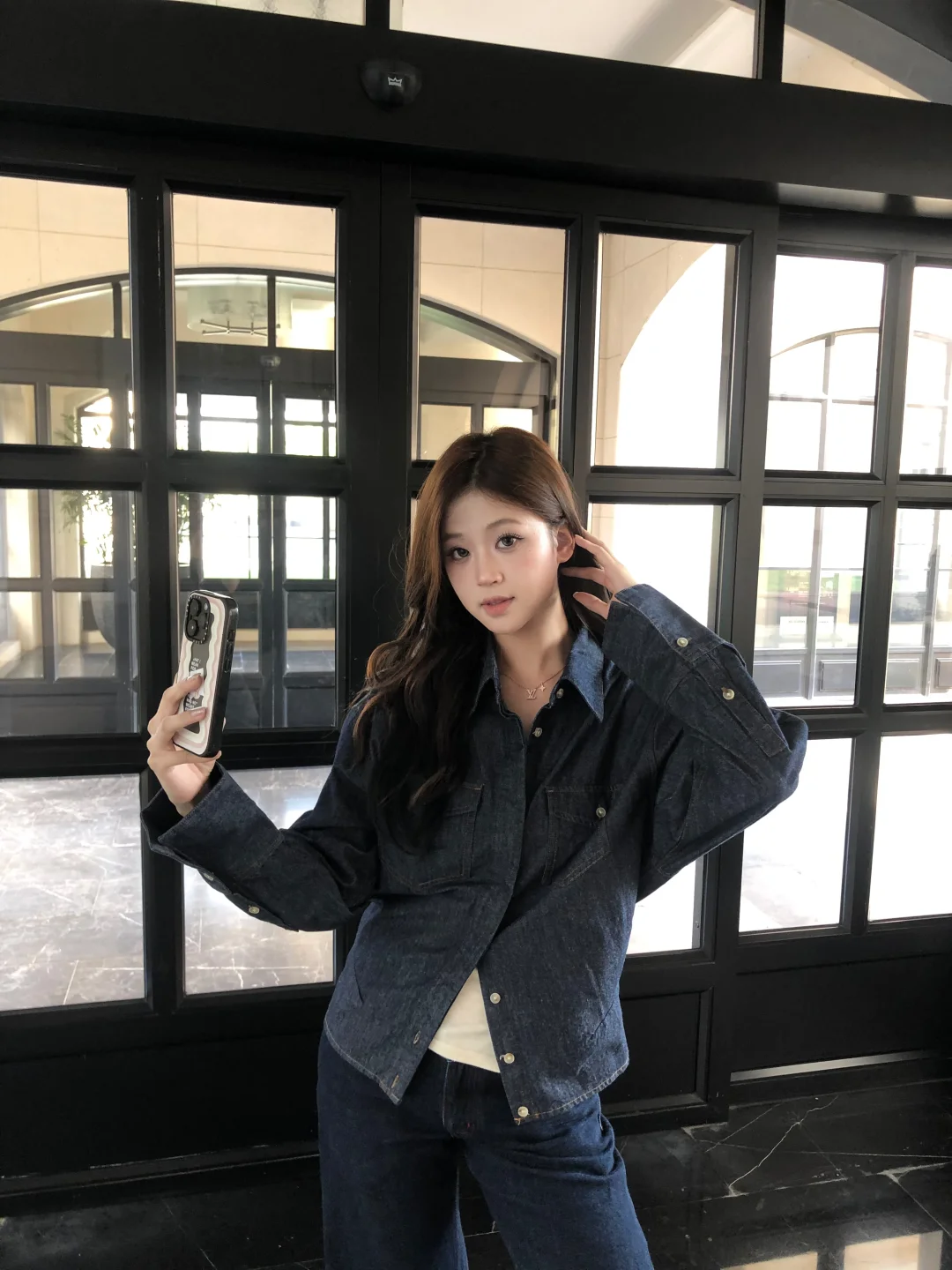 牛仔穿搭 咖啡店拍照 每一个瞬间 要不断尝试新风格