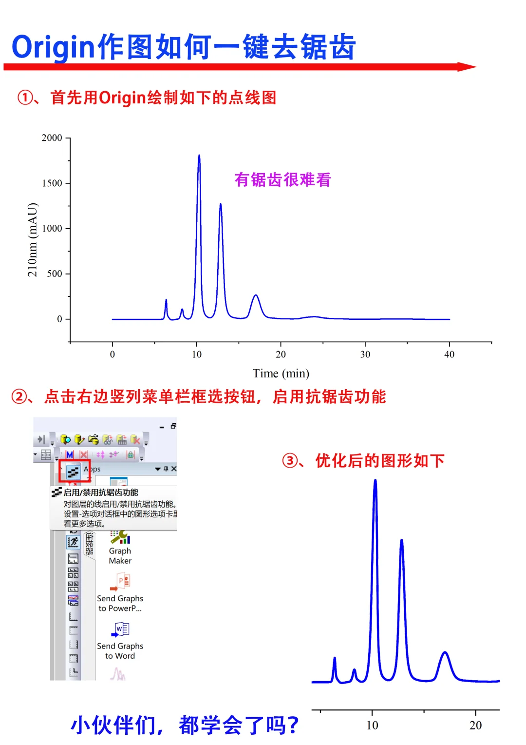 Hi~科研宝子们,大家晚上好[飞吻R]我是科研废物[猪头R] [向右R]本期跟大家分享一个作图小技巧,Origin作图如何去除锯齿 满满的干货哦,欢迎大家👍收藏,一起讨论交流呀