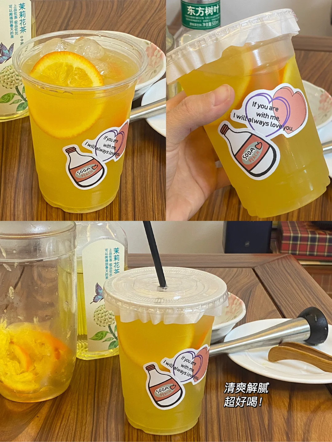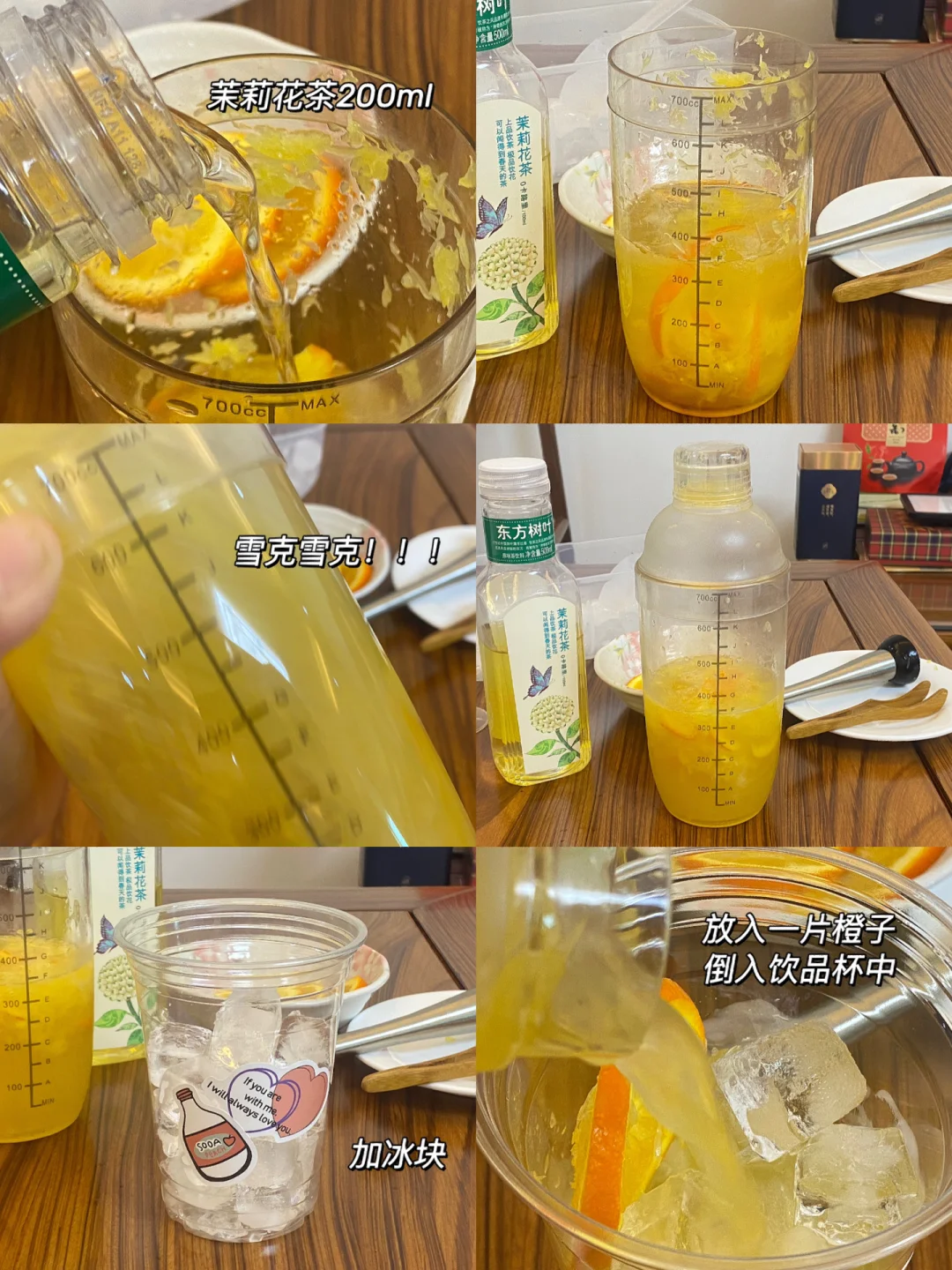 🍊食材:橙子,茉莉花茶,蜂蜜,冰块。 🍊做法:1.雪克杯中加入三片橙子,加入少量冰块,捶打出汁。 2.加入蜂蜜15ml,茉莉花茶200ml,雪克雪克!!! 3.饮品杯中放一片橙子,冰块,倒入调好的橙汁。 🍊清爽解腻,超好喝[赞R][赞R][赞R]