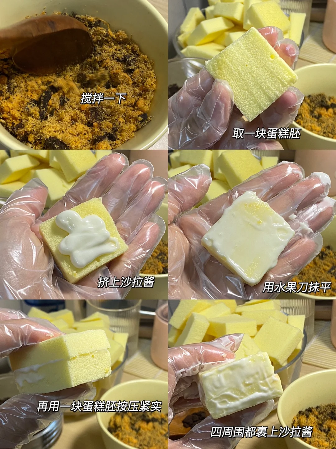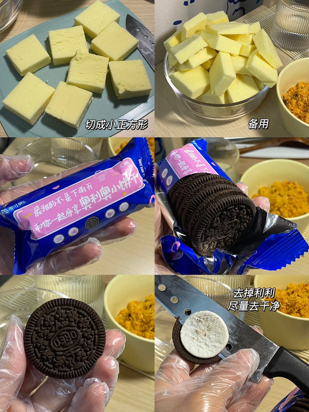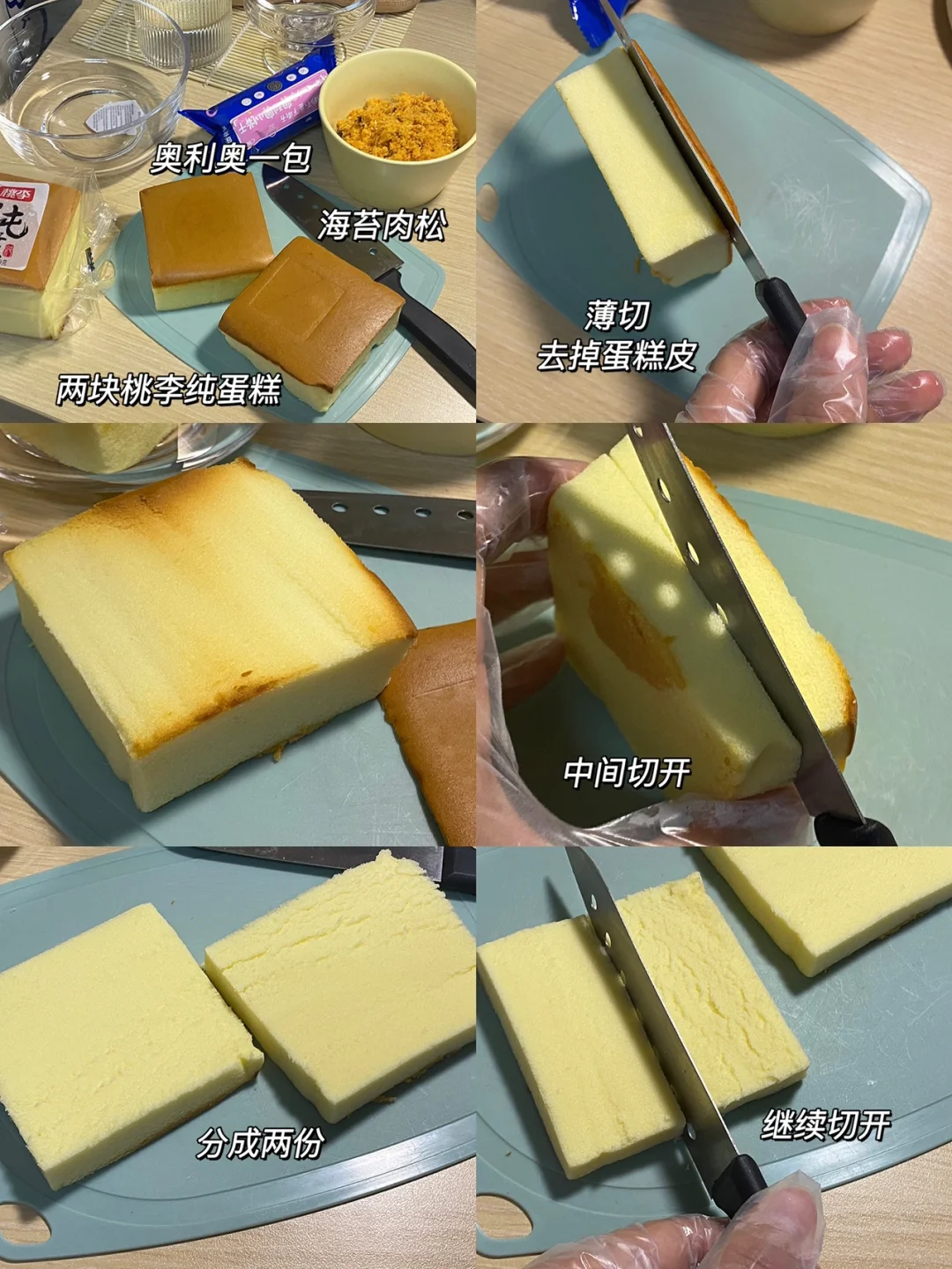 🧸食材:奥利奥一包,海苔肉松,沙拉酱,两块桃李纯蛋糕。