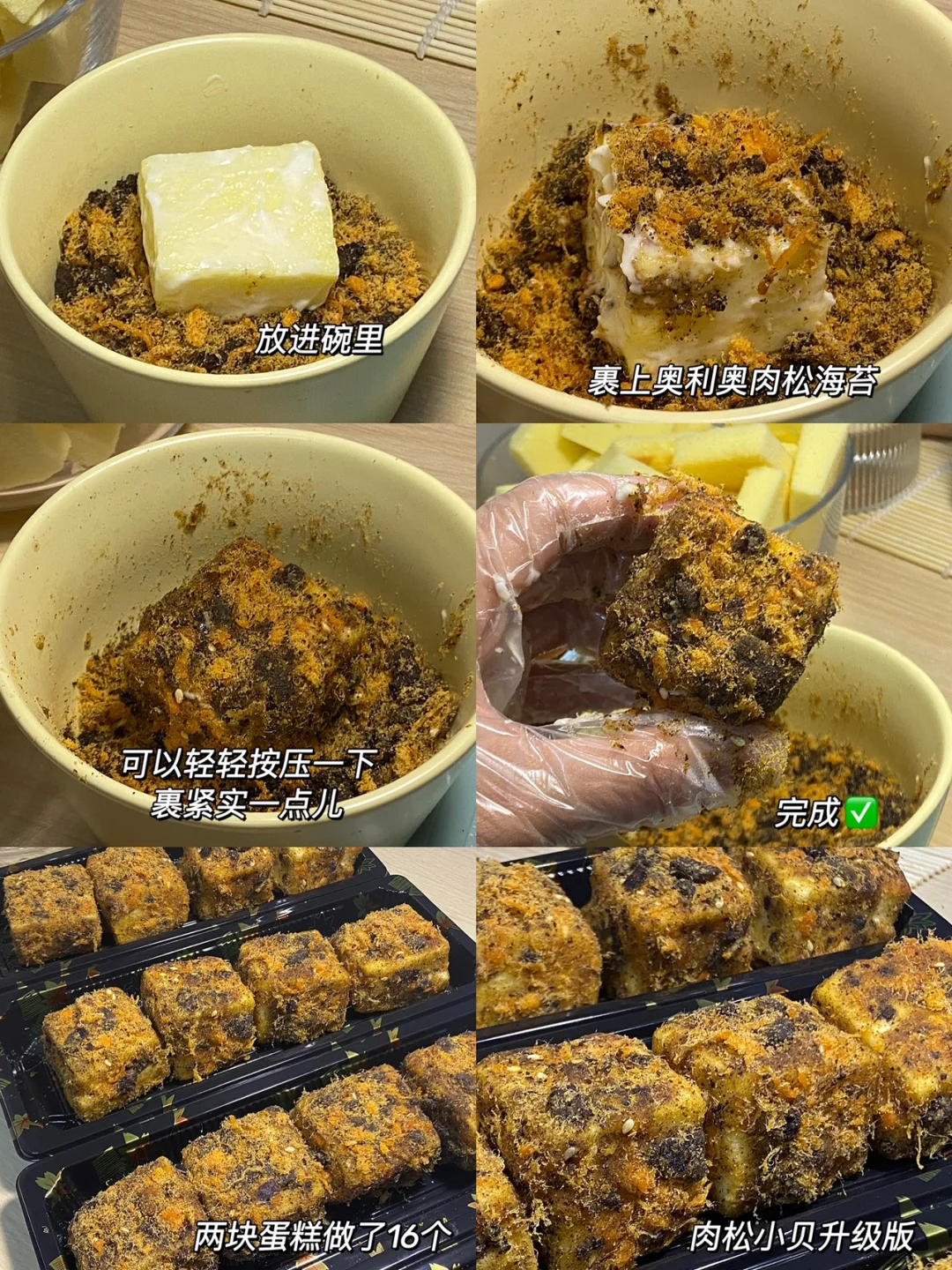 8.放进碗里,裹上奥利奥肉松海苔,可以轻轻轻按压一下,裹紧实一点儿,完成✅