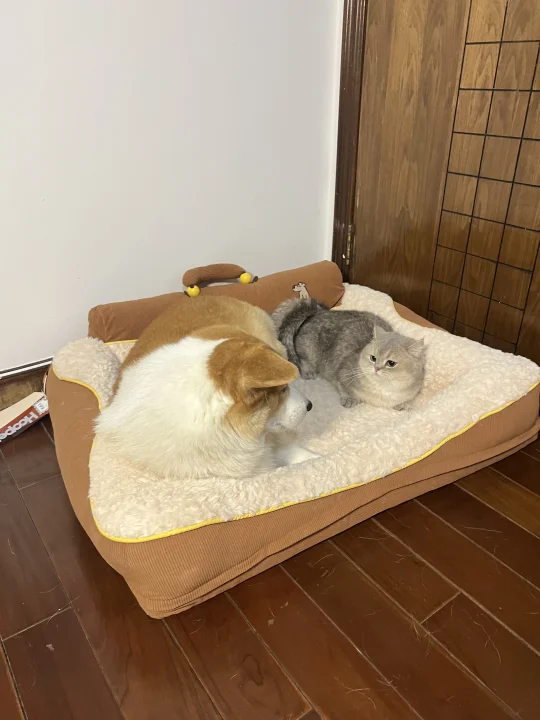 这下真买到狗生大软床了。这个配色真的太适合我们小柯基了。凸起来的地方刚好可以用来枕头。之前买过很多个狗窝,但是洗起来都特别麻烦,每一个都是用完一个冬天就扔掉,但是这个Hoopet四方窝是可以拆洗的,真的太方便了….我们家小猫也会上来蹭这个小窝