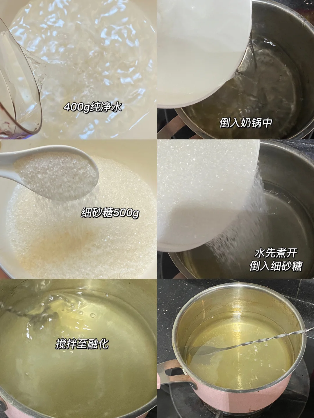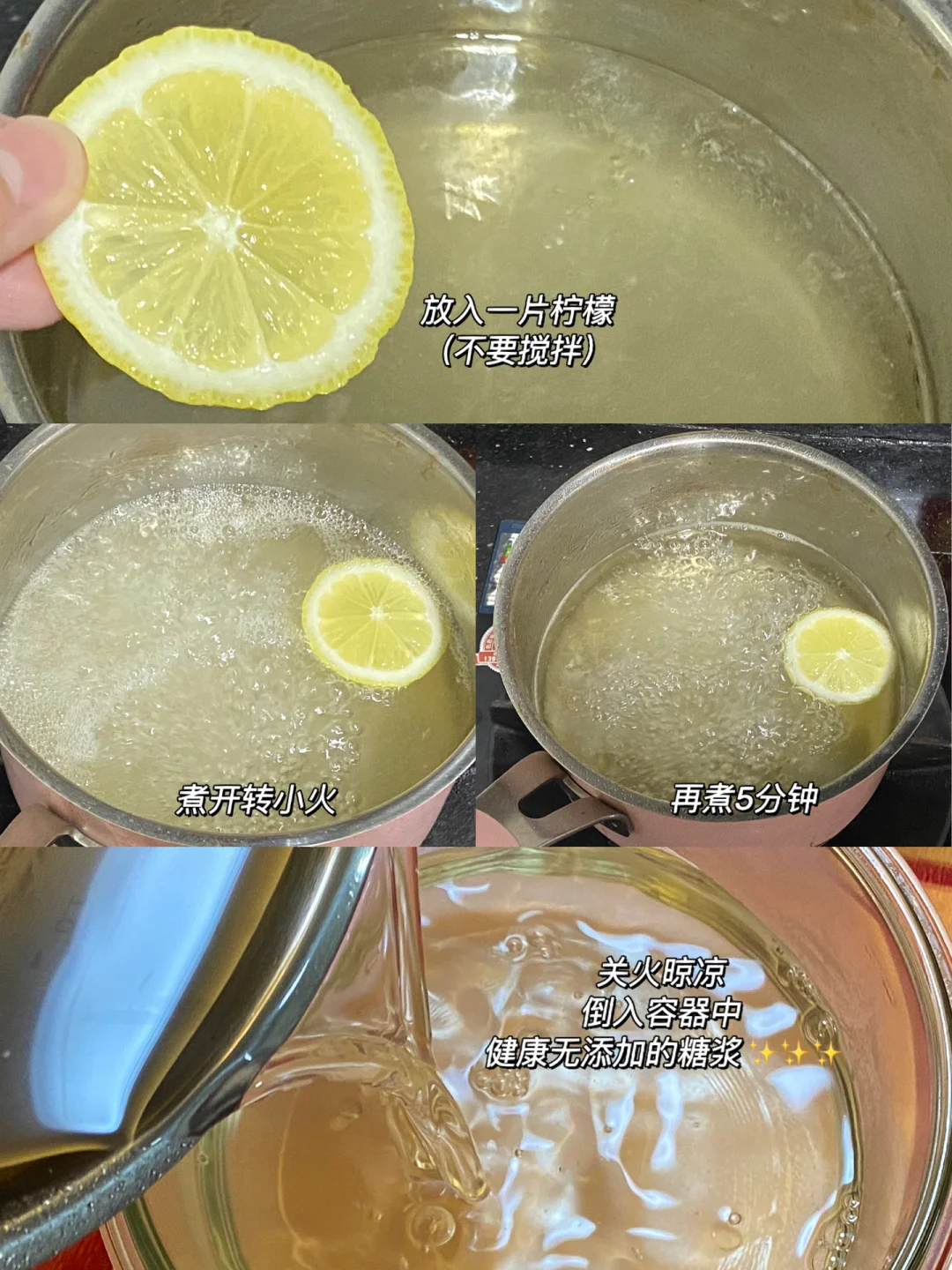 🌼食材:纯净水400g,细砂糖500g,柠檬一片。 🌼做法:1.奶锅中先放入纯净水煮开,再放入细砂糖。 2.搅拌至融化,放入一片柠檬(切记不要搅拌哦) 3.煮开转小火,再煮5分钟即可。 4.关火晾凉,倒入容器中,健康无添加糖浆,以后做饮品都方便多啦,快去试试吧[派对R]