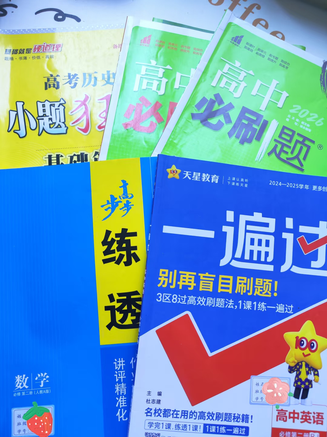 地理和政治通用版都是必刷题,外加校本辅导,平日地理作业卷子比较多。历史学期内就一本校本辅导,假期会练习小题狂做。