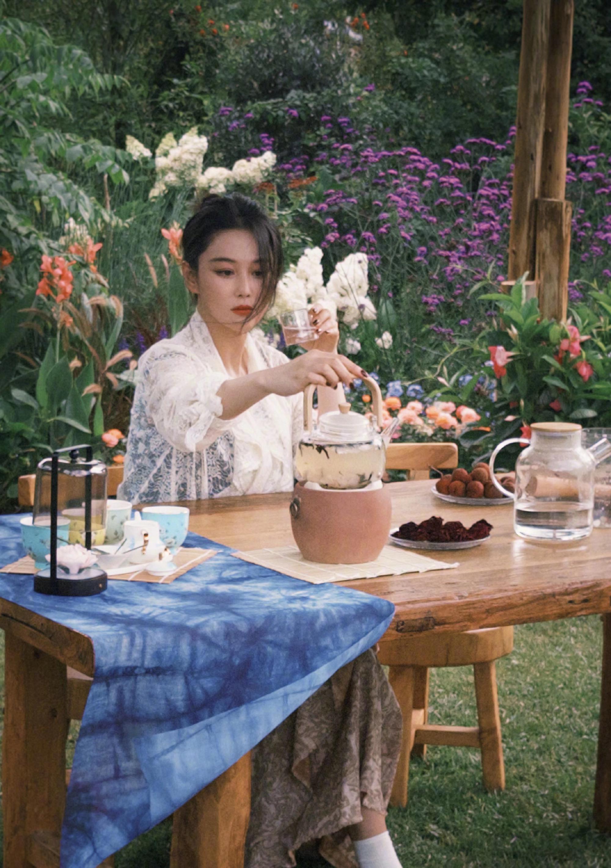 张馨予|美照掉落。三五好友围炉煮茶赏花畅聊,慢节奏生活令人向往~