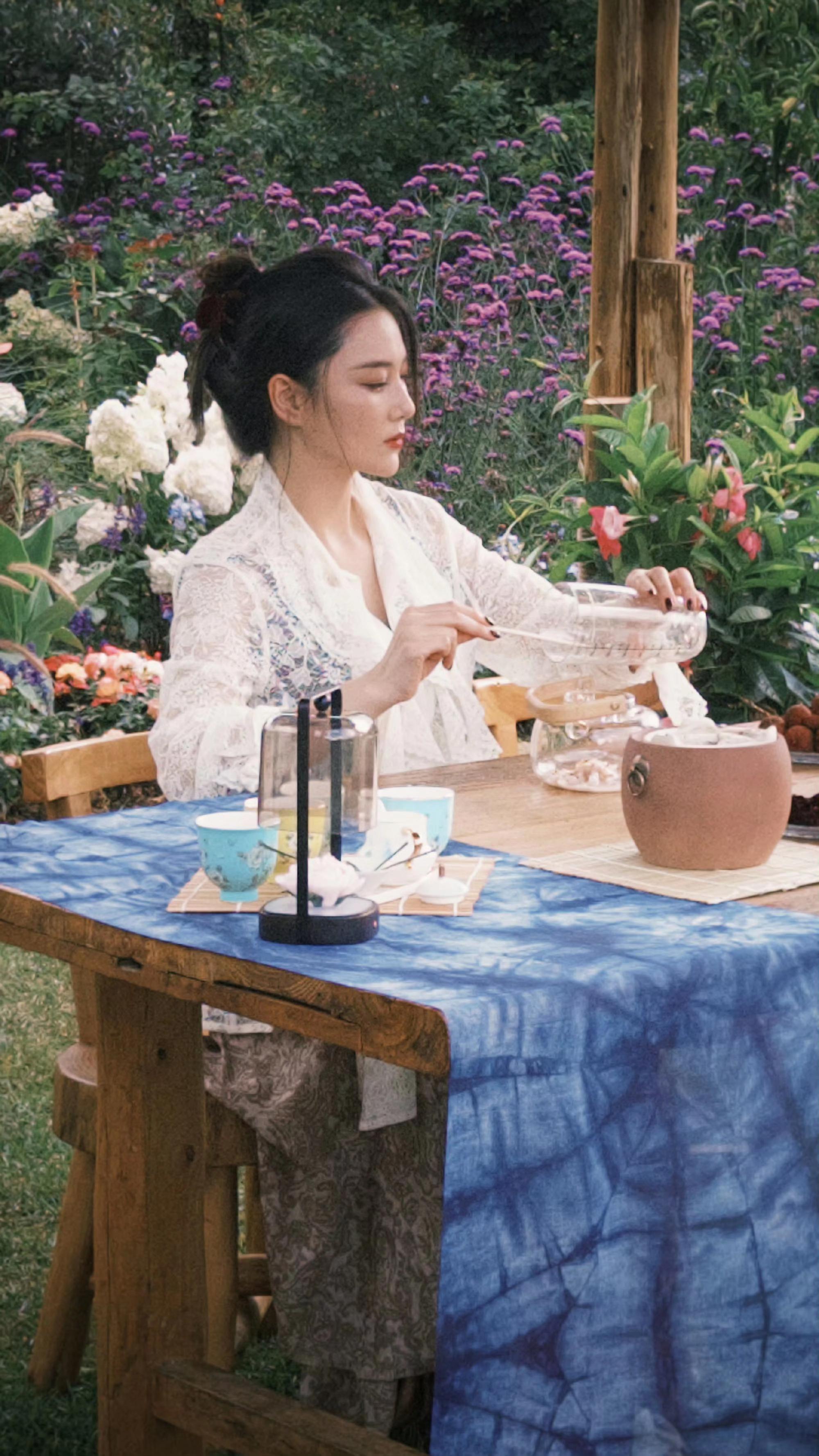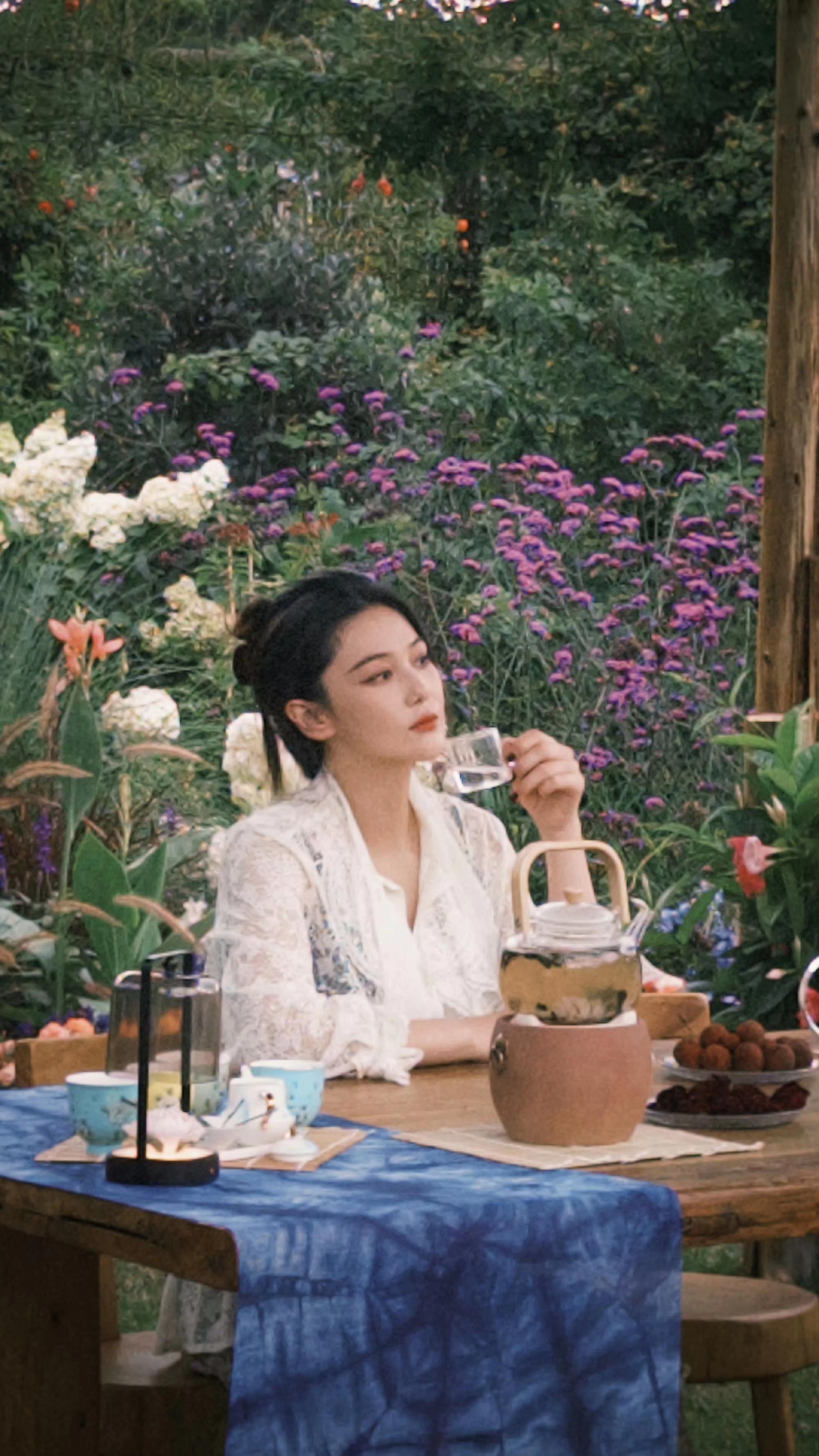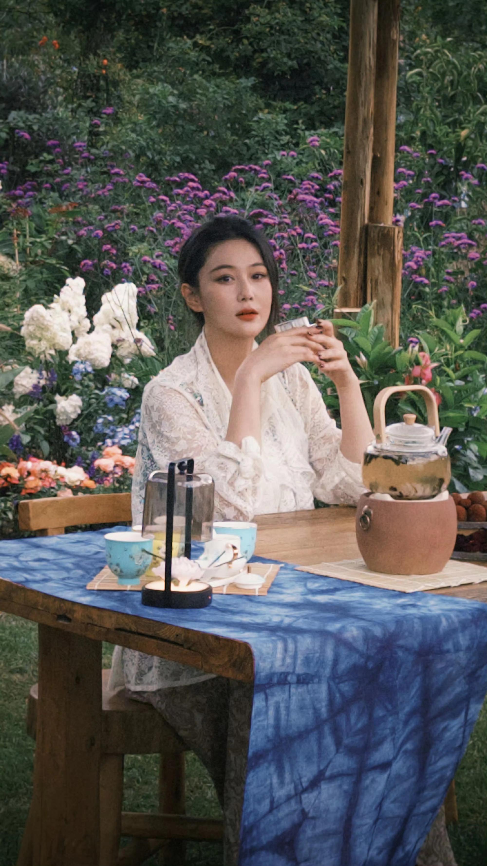张馨予|美照掉落。三五好友围炉煮茶赏花畅聊,慢节奏生活令人向往~
