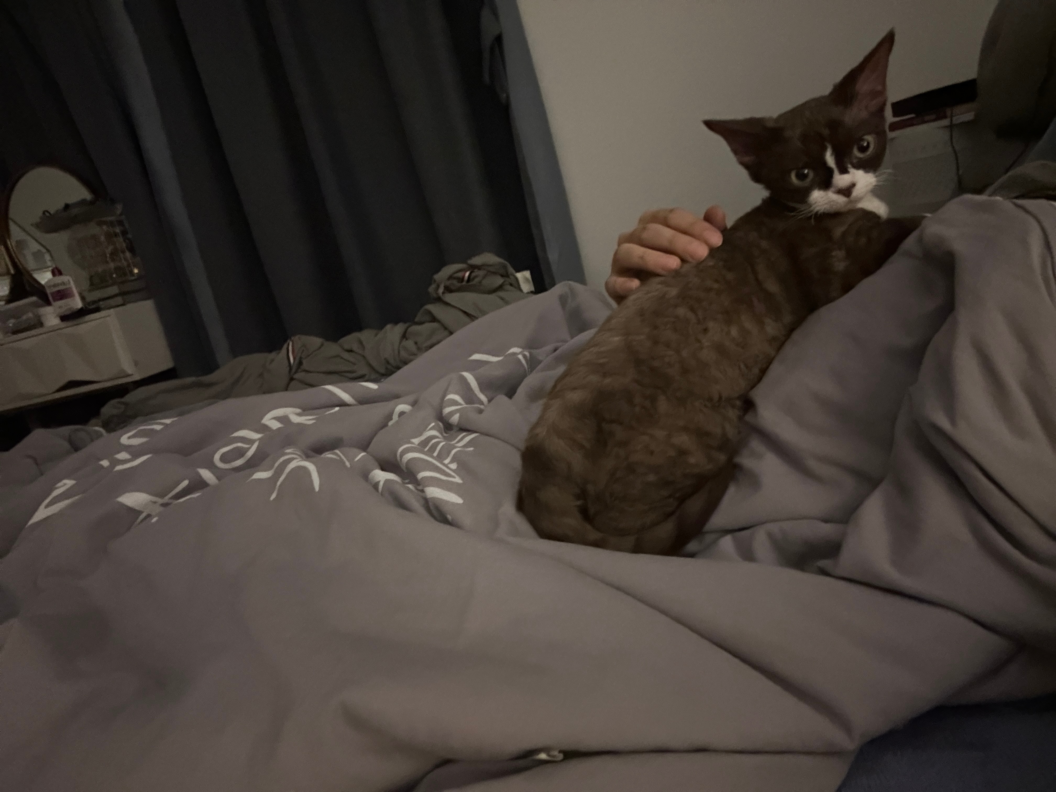 我以为它睡着了,结果开闪光灯发现,好家伙~迷瞪着小眼偷瞄我跟小家伙呢~