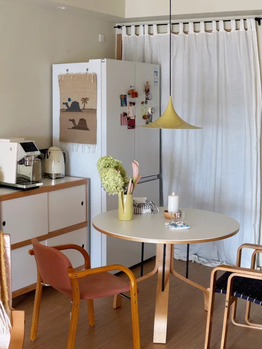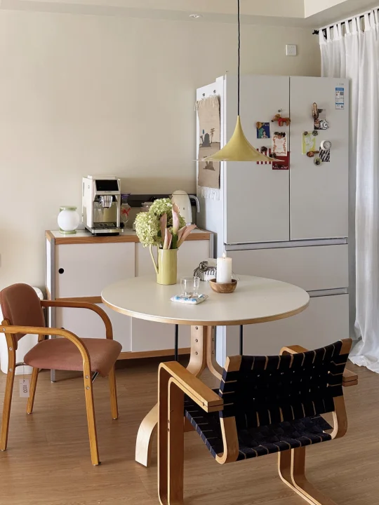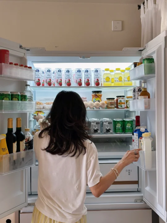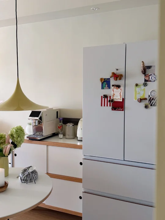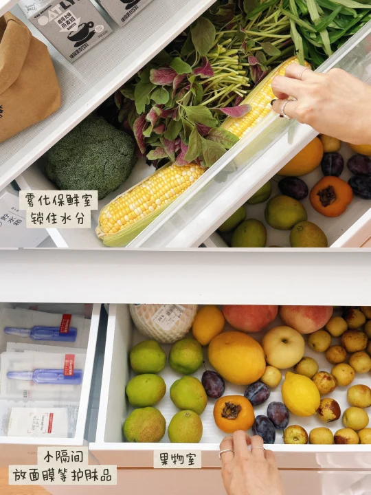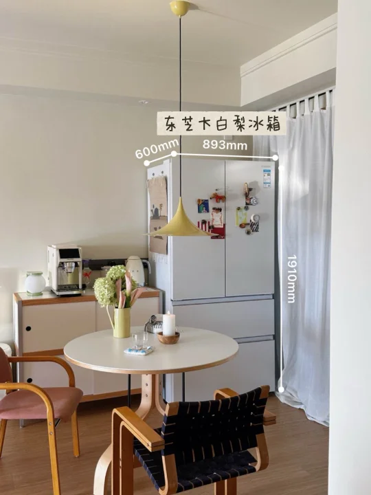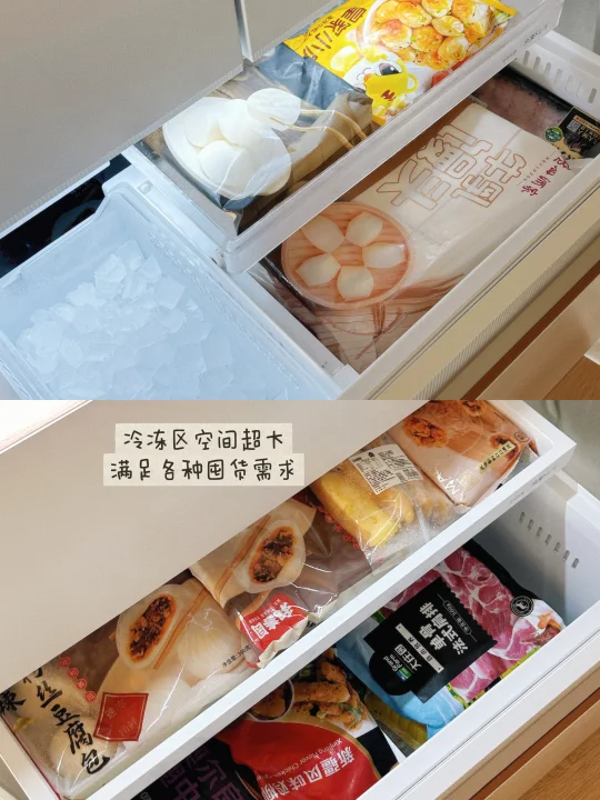 装修时特意没有做满墙的定制柜 所有家具都可灵活移动重组 每个物品都要经过颜值和收纳的双重考验 / 我家冰箱最终选定的东芝大白梨冰箱 贝母白面板简约美观,和我家风格很搭 还能磁吸冰箱贴增加趣味 别看占地不大,内部足足有600L大容量 做自由职业后平时很少出门 一出去就会大采购,把冰箱塞满 够我们吃上一周了 雾化果蔬保鲜区可以更长久的保持果蔬营养鲜活 冷冻区有-30℃深冻锁鲜 适合囤海鲜和牛排,急速冷冻不影响口感 双系统双循环 冷冻冷藏独立制冷 水果蔬菜和海鲜肉类再也不怕串味问题🍓🥩 夏日最离不开的是它的制冰功能 60分钟急速洁净出冰❄️独立储冰盒还带杀菌 随时都能喝到冰爽冷饮,猫咪都凑过来蹭凉气~ 现在冰箱里总是满满当当 两人三餐俩猫 四季鲜食不断 选对冰箱真的能提升幸福感✨