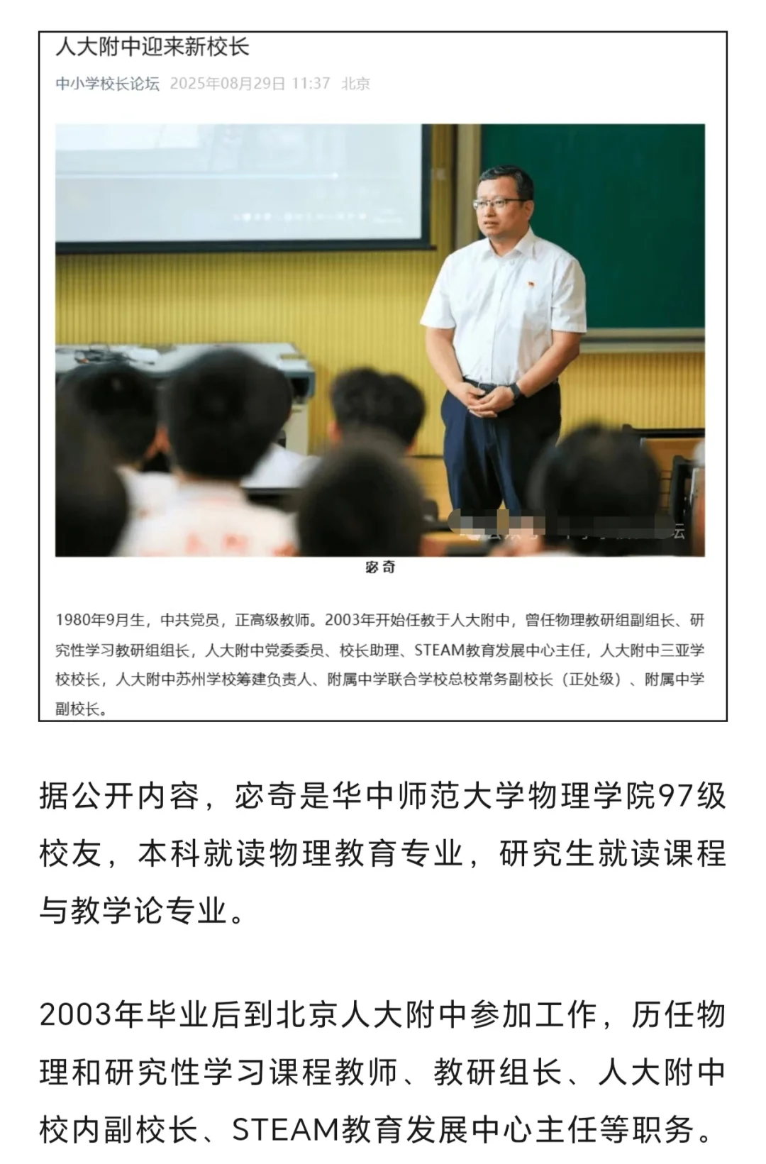 即将开学,人大附中换校长了!