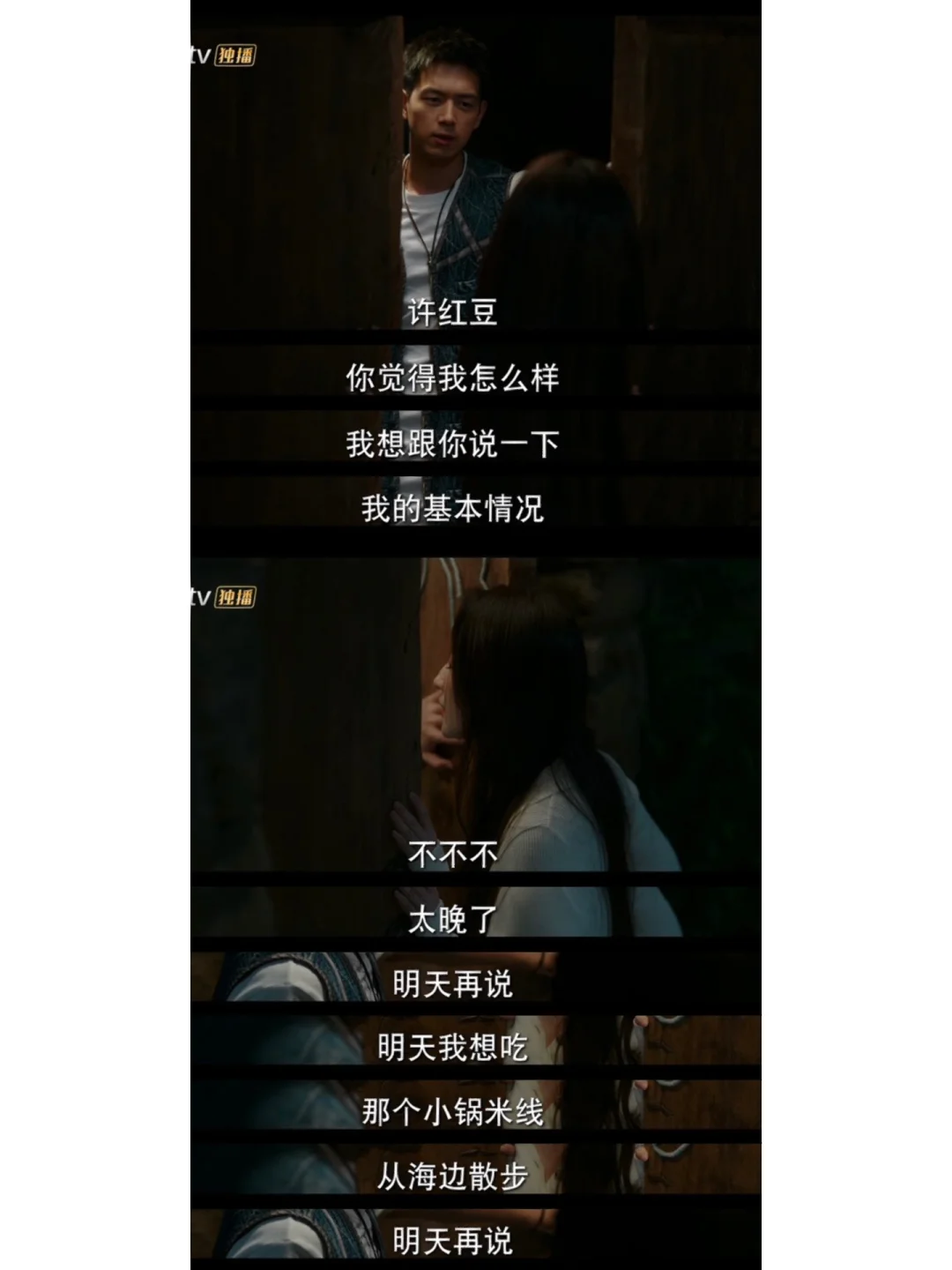 谢之遥的爱情十分快乐。真正喜欢怎么可能藏得住,红豆都委婉地说了,明天先一起吃米线,然后再去海边散步,在海边表白多浪漫啊,仪式感也有了,结果阿遥片刻都无法再忍,交代所有储蓄,告知家庭情况,承认自己没有达到世俗意义上的成功,然后表白:“许红豆,这些年,我遇到了很多人,很多很好的姑娘,但不知道为什么,我没感觉,我对别人都没感觉,我只感觉到了你。”风乍起,吹皱一池春水。闲引鸳鸯香径里,手挼红杏蕊。许红豆,你是一股风,有刚刚好的温度,波澜不惊了这么多年,遇到了你我没办法再淡定下去,我也终于明白了这句诗的含义:“世人万千种,浮云莫去求,斯人若彩虹,遇上方知有。”