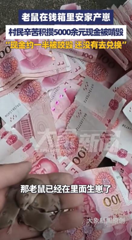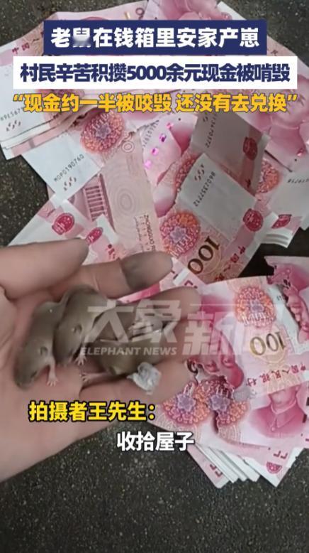 担心的事还是发生了!9月28日,河南驻马店,一男子在家中干活时,意外找到了一个装钱的箱子,结果听到里面有老鼠的叫声,打开箱子后发现有一窝鼠崽,5000多元现金被老鼠咬毁了一半,不知道还能不能兑换。网友:老鼠真是太可恶了! 当时王先生正在姑姑家帮忙做地坪漆时,突然发现了一个藏匿在家中角落里的箱子,箱子外观看起来普普通通,透过几道缝隙,可以隐约看到里面似乎装着一些现金,然而令王先生和现场其他人惊讶的是,箱子里竟然还传来了“吱吱”的老鼠叫声。 然而当王先生壮起胆子打开了箱子,却没想到眼前的景象让他大吃一惊,里面不但有几只小老鼠,还发现了一窝鼠崽,显然这些老鼠把这箱子当做了自己的栖息地。 而更加让人气愤的是,箱子里的5000多元现金,几乎有一半被这些老鼠咬烂了,钞票的边缘已经被啃得破损不堪,部分现金已经变得模糊不清,难以辨认。 王先生本能地开始查看剩下的钱,心里不禁涌起一股愤怒的情绪,毕竟这些钱是他姑姑积攒了多年的心血,而被老鼠毁掉,谁能不心疼? 更糟糕的是,由于发现得晚,王先生并没有立即将受损的钱拿到银行兑换,虽然有些人认为这并不是什么大问题,但对于一个对数字敏感的家庭来说,这笔损失显然不小,尤其是其中一些钞票的破损程度严重,是否还能兑换成标准现金,仍然是个未知数。 尽管现在越来越多的年轻人都倾向于使用电子支付,但老一辈人依然有着将现金存放在家里的习惯,而且王先生的姑姑年纪较大,平时习惯将现金藏在家中一些不起眼的角落。 可谁能想到,这种看似“安全”的做法,竟然成了老鼠的“美味大餐”,这也让人不禁反思,虽然我们生活在一个日益数字化的时代,但有些传统的生活方式依然难以改变,尤其是老一辈人对于现金的依赖。 这起事件还引发了网友们的广泛讨论,一些人对老鼠的肆虐表示愤慨,认为这种动物除了偷吃粮食、啃咬家具和衣物外,几乎无所不为。 而且老鼠身上携带的细菌也是让人避之不及的“祸害”,因此它们常常被视为“人人喊打”的对象,尤其是在一些农村或者偏远地区,老鼠的数量比较庞大,它们不仅对家庭生活造成困扰,甚至对家中存放的财物也构成了威胁。 更令人感到不安的是,老鼠的“影响”并不仅限于物质上的破坏,它们的存在往往伴随着细菌传播,给家庭的健康带来隐患。 因此王先生和其他网友纷纷提醒大家,存放现金的地方一定要选择干燥、通风的环境,避免潮湿和不洁的地方,如果一定要在家里存现金,最好选择安全可靠的保险箱,而不是随便把钱放在一些隐蔽角落。 尽管王先生在事件发生后并没有过于沮丧,但能看出他心中的愤怒和无奈,毕竟在这个充满变化的时代,存款方式也在逐渐发生变化,而现金的保管方式似乎有些过时。 然而对于那些依然习惯用现金的老人们而言,改变这一习惯并不容易,尤其是在他们的生活中,电子支付还没有完全普及。 这起事件的发生,也让我们看到了时代的两面性,电子支付为我们的生活带来了便捷,避免了现金丢失或被损坏的风险。 但同时也让一些传统习惯变得显得有些脆弱,对于那些依然习惯保存现金的老一辈人,或许应该思考如何在现代化的生活中找到一个既安全又方便的存款方式。 总之,这个意外事件给了我们一个深刻的教训:存钱并不只是在银行,也要注意存放环境的选择,而对于那些总是觉得老鼠离自己很远的人,不妨也多一些警觉,确保家中的环境干净、安全,避免不必要的损失。 对于这件事情,大家有什么看法? 信息来源:《村民积攒的5000余元现金被啃》齐鲁壹点