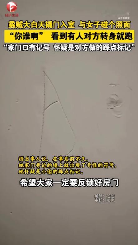 “胆子真大!”9月24日,河南开封,一女子在家里休息,忽然听到有人敲门,但她并没有搭理,过了一会儿,敲门声停了,女子就出来查看那人走没走,结果对方已经撬开门锁进来了!见到屋里有人后拔腿就跑,女子还在家门口发现了奇怪的记号。网友:太嚣张了! 那天屋外有装修工人正在工作,因此噪音比较大,整个小区弥漫着建筑的响动,就在她正放松地享受片刻宁静时,突然传来了敲门声,女子站起身走到门口,听见门外没有说话的声音,她心想着可能是有人找错门了,就没有理会,继续坐回到沙发上。 几分钟后,门外的敲门声停了,女子想了想,心中有些疑虑,她站起身决定出门看看,确认那个人走没走,走到门口时,她瞬间傻了眼——门锁竟然被撬开了! 显然门外的人并没有走,而是趁着装修的噪音掩护,已经动手破坏了门锁,门一打开,女子迎面和一个陌生男子撞了个正着。 那一刻,两人四目相对,女子只来得及愣住,陌生男子却瞬间反应过来,意识到屋内有人,于是转身撒腿就跑,女子的心跳瞬间加速,但她并没有慌张,而是赶紧站在门口,回头查看周围。 当时她猛然想起几天前,自己在家门口曾看到过一个奇怪的符号,她怀疑,那正是小偷之前踩点时留下的标记。 这个发现让女子更加警觉,意识到自己差点就成了小偷的目标,她赶紧拨打了报警电话,警方随即展开调查,但由于小偷已经逃离,案件仍在进一步处理中。 警方表示,虽然小偷未能得手,但仍要加强对周边地区的巡查,避免类似事件的发生。 这一事件引起了不少网友的关注,大家纷纷评论说:“胆子真大!”有些人则表示,女子果敢的反应值得钦佩,独自走出门口查看,勇气可嘉。 也有网友提醒,尽管治安越来越好,但任何时候都不能掉以轻心,尤其是独居的女性,平时一定要保持警觉。 近年来,随着社会治安的不断改善,监控摄像头已经普及到各个角落,街头巷尾、商铺门前,都能看到这些“眼睛”无时无刻不在观察着周围的情况。 许多家庭也开始安装监控设备,以增强自身的安全防范,然而就像这个事件所揭示的那样,尽管大部分小偷不敢轻举妄动,但仍有一些胆大妄为的人敢于冒险,而这背后正是对监控与技术的熟悉以及对规则的挑衅。 这位女子的故事,也给我们提了个醒,虽然现在大街小巷的监控越来越多,但并不能完全杜绝所有的犯罪行为,尤其是针对独居人群的侵害。 事实上,很多小偷往往在踩点过程中,会留下些许痕迹,比如不经意间的符号或异样的标记,作为提醒自己什么时候再来下手。 而我们在日常生活中,尽可能提高警觉,细心观察周围环境,做到早预警,才能最大限度避免危险的发生。 而女子独自检查门口的举动,不仅是勇气的体现,也是她在多次安全意识提醒下的自我保护行为,在日常生活中,我们经常被告知“遇到紧急情况要冷静”,但像这位女子一样,能在紧要关头采取行动,凭借冷静的判断力和迅速反应,也许才能化险为夷。 总的来说,事件的发生虽然令人心惊,但也提醒我们时刻保持警觉,尤其在独自居住时,更要留意门口和周围的动静。 面对潜在的威胁时,能迅速冷静应对,并采取正确的行动,往往能避免更严重的后果,大家在享受社会治安改善的同时,也要牢记:安全无小事,平时的细心观察和谨慎防范是避免风险的关键。 对于这件事情,大家有什么看法? 信息来源:《小偷白天撬门入室与屋主碰个照面》齐鲁晚报