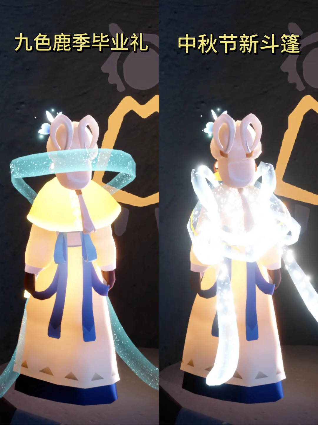 这两个都很好, 一个是毕业礼绝版,另一款是礼包,二者其实没有可比性,也没法放在一起比较拉踩,也没必要拉踩哈,看到很多拿着九色鹿毕业礼去抨击嫦娥飘带的,有点烦了 这两款斗篷的配色和设计都很不错啊,各有千秋 不过个人感觉九色鹿毕业礼没那么亮,白天看又略显暗淡,相反这个嫦娥飘带晚上嘎嘎亮,白天会稍微好一点