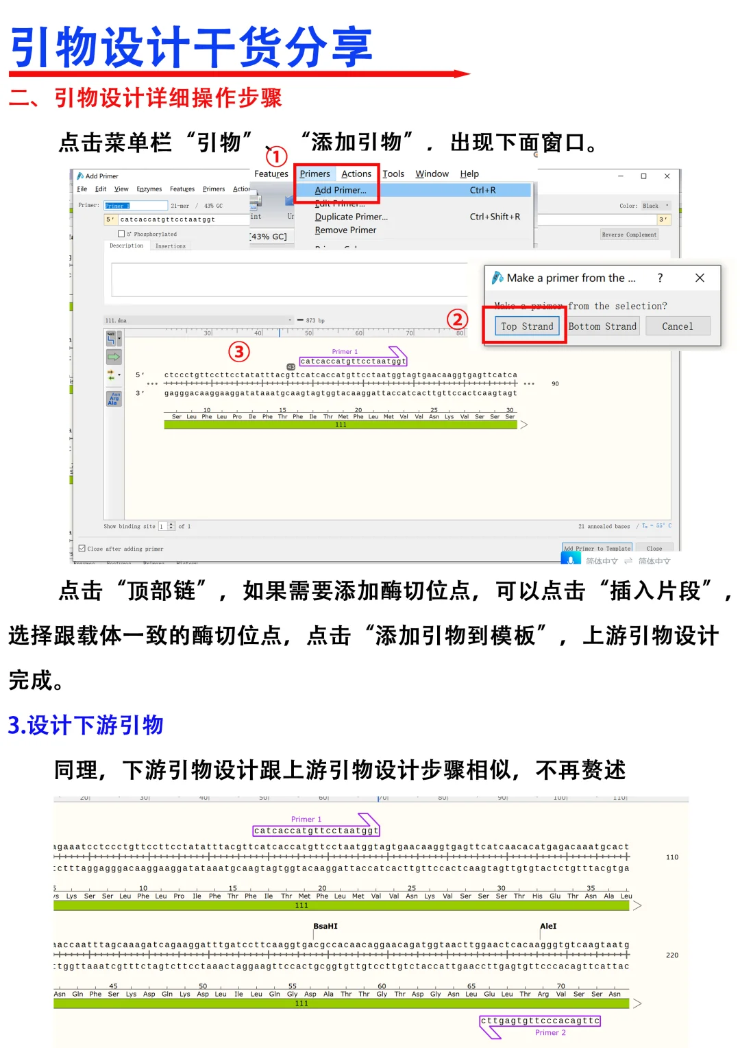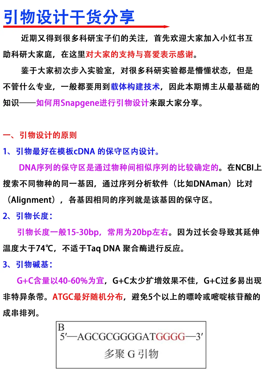 Hi~大家晚上好,我是科研废物,一名喜欢分享实验原理的科研博主[飞吻R] 本期跟大家分享的是引物设计技巧分享 [向右R]主要从以下三个方面进行分享 1⃣️引物设计原则 2⃣️引物设计详细操作步骤 3️⃣引物设计的技巧 满满的干货与tips ,欢迎大家👍收藏,一起讨论交流呀!