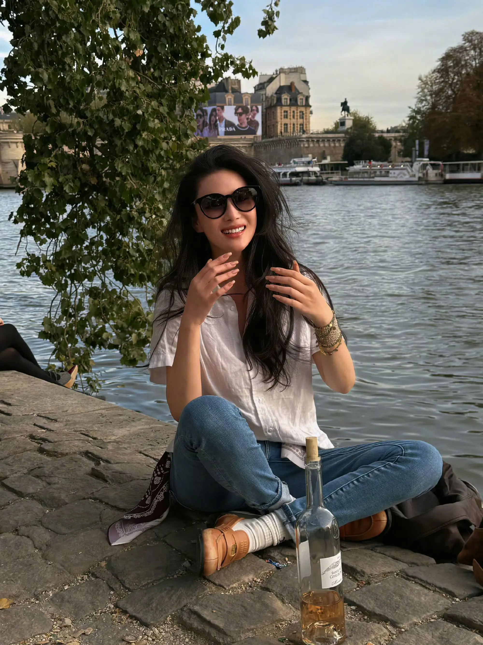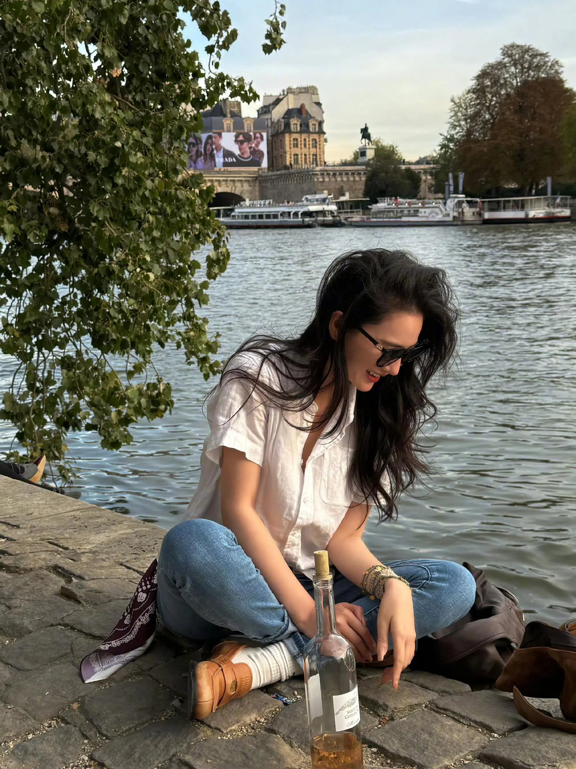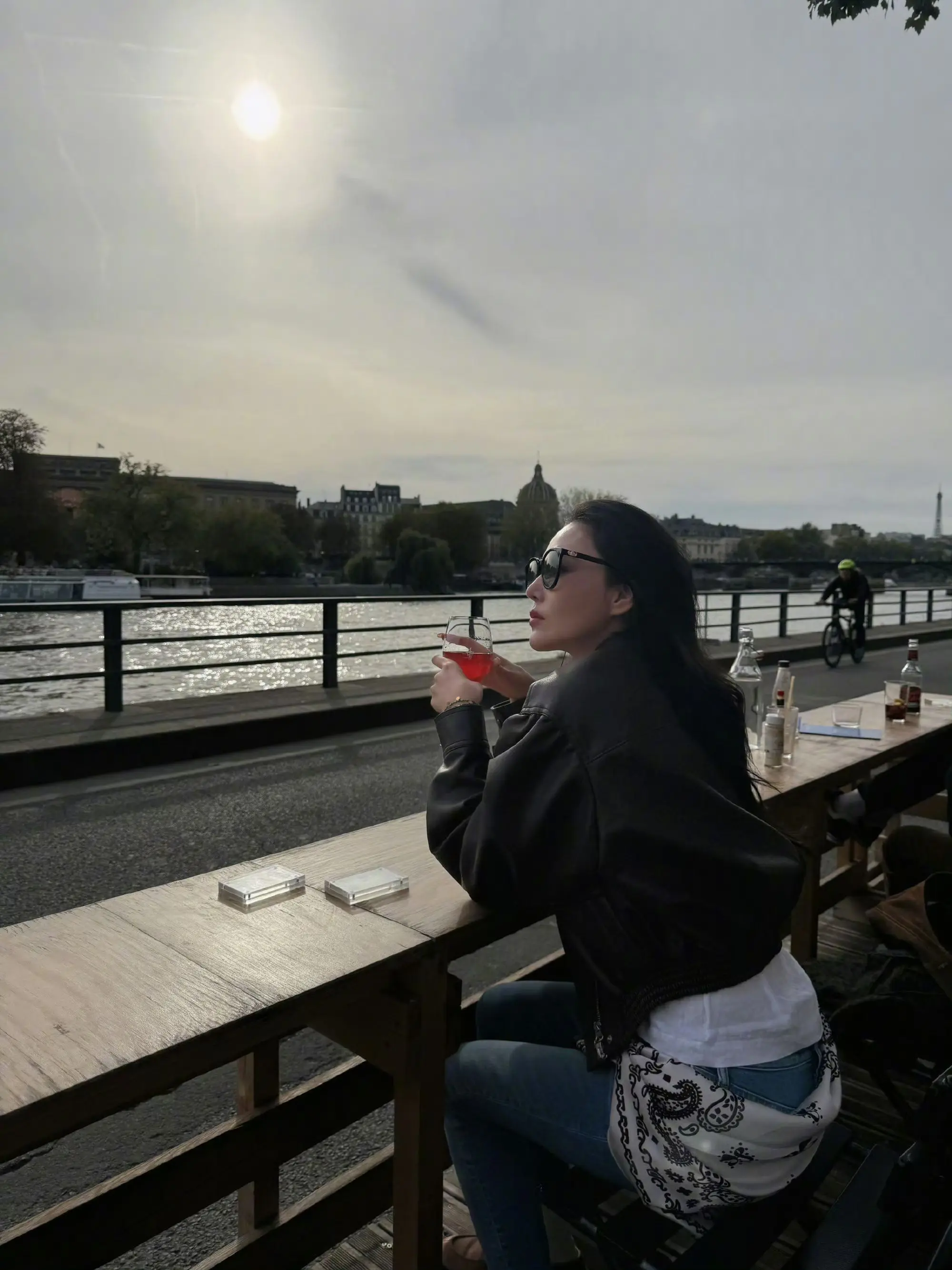 张馨予|巴黎河边放松时刻。巴黎的小河边,跟好友一起晒晒太阳,畅聊一通,太舒服了