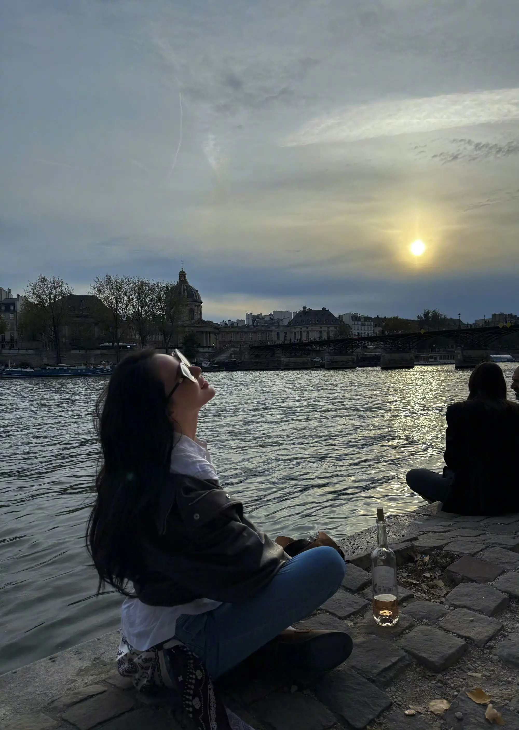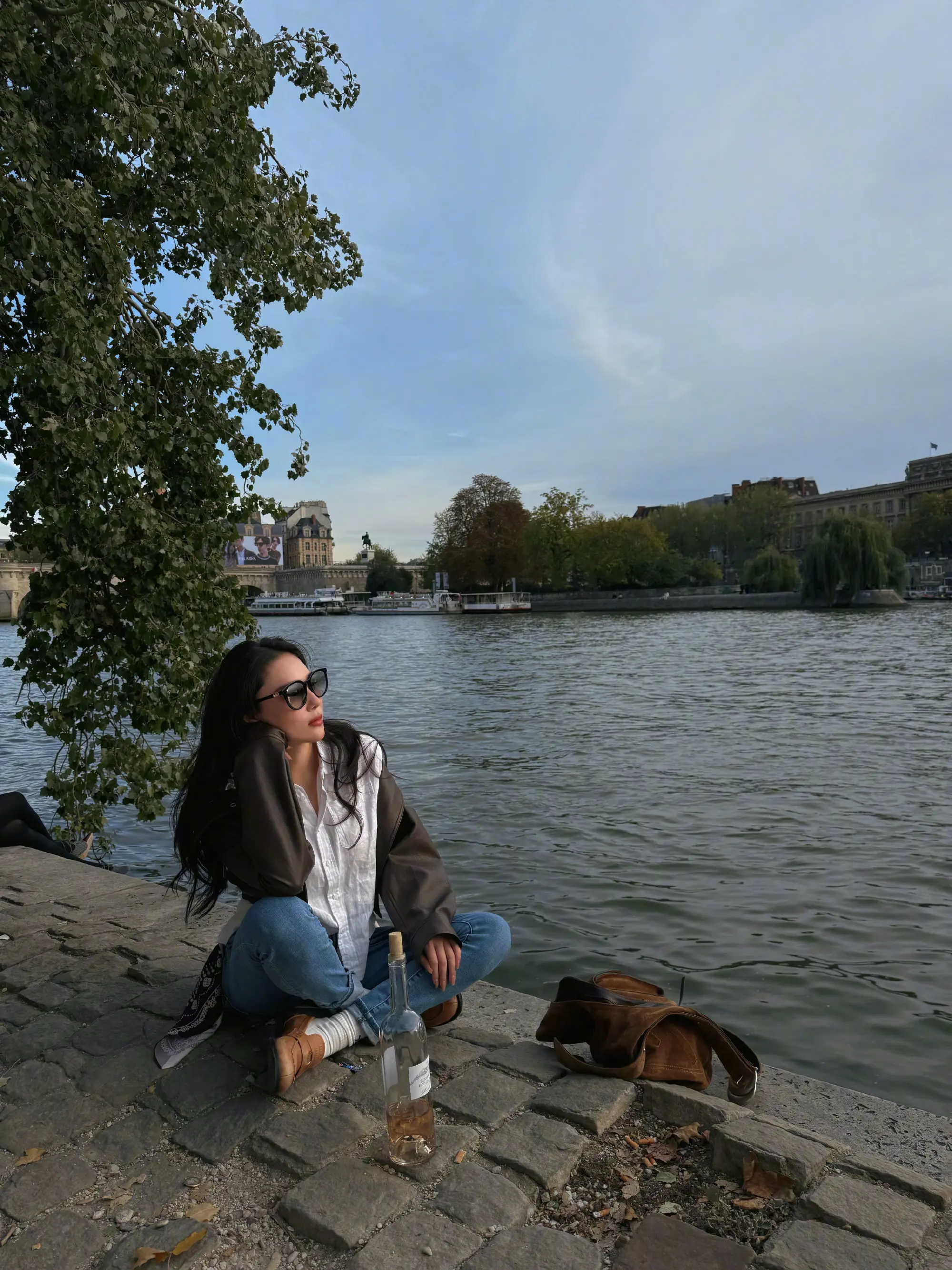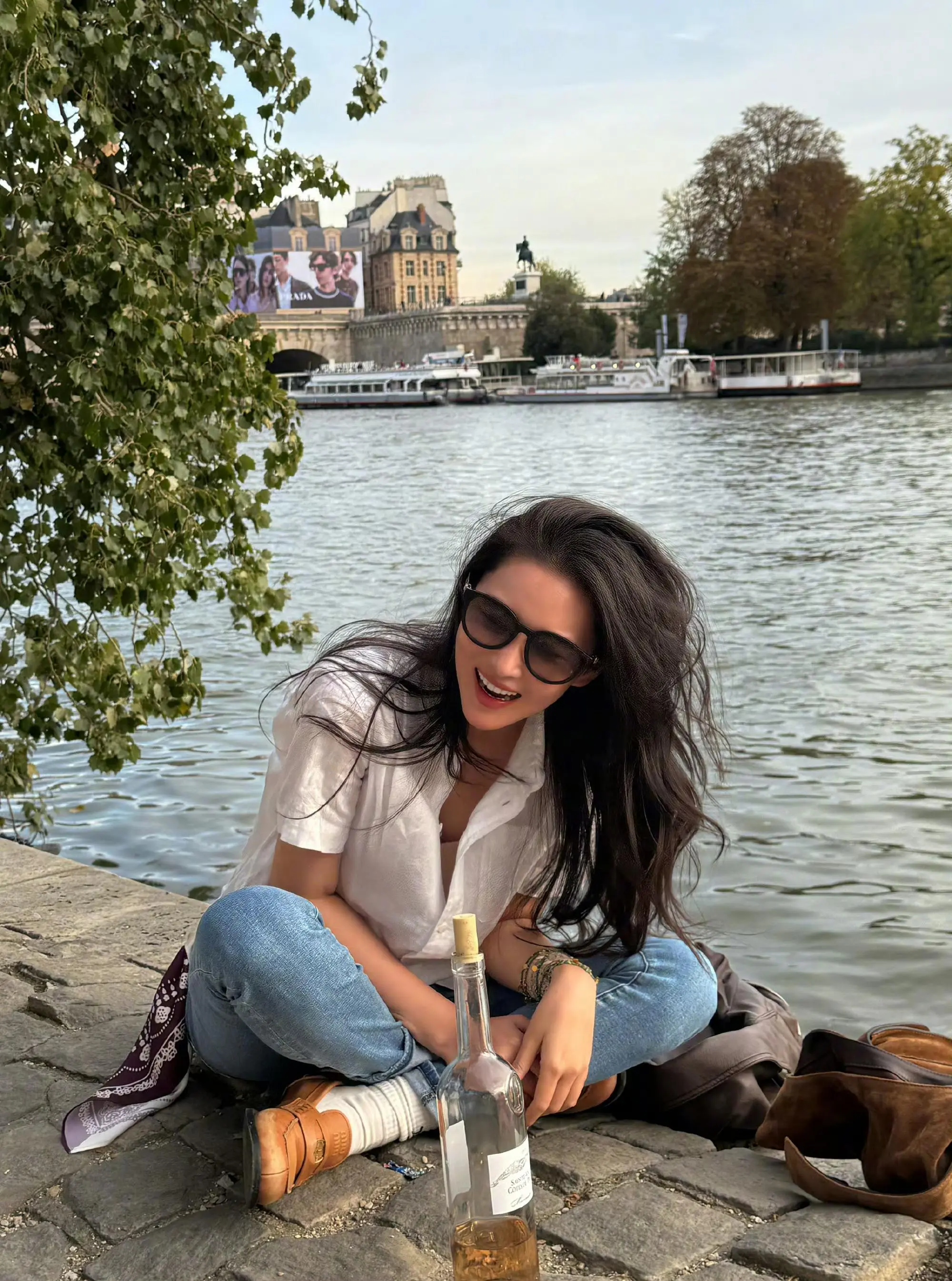 张馨予|巴黎河边放松时刻。巴黎的小河边,跟好友一起晒晒太阳,畅聊一通,太舒服了