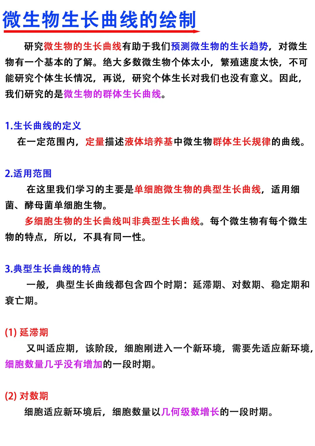 Hi~大家晚上好,我是科研废物,一名喜欢分享原理的科研博主[蹲后续H] [种草R]做了这么久的微生物实验,大家真的会绘制微生物生长曲线了吗[哇R]本期就带着疑问来给大家分享一下如何绘制微生物生长曲线 [向右R]主要从以下六个方面进行分享 1⃣️生长曲线的定义 2⃣️适用范围 3️⃣典型生长曲线的特点 4️⃣如何绘制单细胞生物典型生长曲线 5️⃣注意⚠️事项 6️⃣研究生长曲线的意义 满满的干货与tips ,欢迎大家👍收藏,一起交流讨论呀