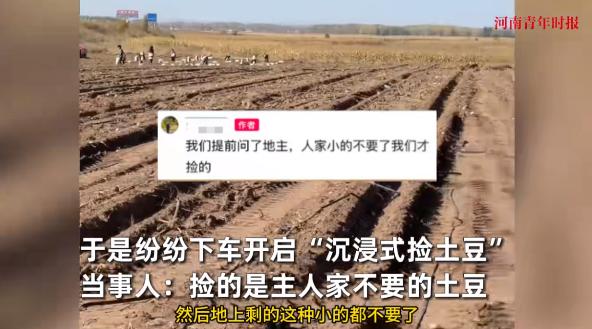 “天上掉馅饼了!”10月3日,内蒙古,一群游客来到当地旅游时,意外发现村民的小土豆剩下在地里没人要了,于是纷纷涌上去捡土豆,有的人甚至捡了满满一大袋,网友:这一趟旅游算是超值了! 当天游客们来到了一个偏远的小村庄,正准备好好游玩一番,谁知道却意外发现一片小土豆被遗弃在田地里,没人收走,这些土豆个头小,有些甚至看起来不太好,但它们却吸引了游客们纷纷下车,弯腰捡拾,正所谓“天上掉馅饼”,这么好的机会,谁能错过? 有游客说,他刚到这里时,看到路边停满了车,且大多都是外地牌照的,他好奇地走过去一看,才发现这些车主居然是被免费的土豆吸引来的。 村民早已收走了大部分大个头的土豆,剩下的这些小土豆由于捡起来麻烦,他们便放任在地里无人问津。 但游客们见后,心里自然一阵激动,虽然这些土豆个头小了些,但新鲜、干净,完全可以带回家做菜,何况完全免费,谁不想捡些回去? 于是大家纷纷下车,卷起裤腿,弯着腰开始捡土豆,就这样,原本安静的田地里突然热闹了起来,游客们弯腰捡土豆的场景,看着既朴实又充满了喜悦。 捡到一个土豆,笑脸满盈,捡到一袋土豆,成了大家争相展示的“战利品”,这一幕,简直让人感受到一种简单而又快乐的乡村生活。 很多游客表示,这次旅游真是超出了他们的预期,就像是去了一趟“免费市场”,带着不期而遇的幸运。 和那些在景点人山人海的游客不同,捡土豆的游客几乎可以说是“悠闲自在”,既没有被堵在景区门口的烦恼,也没有为了看一个景点排队的焦虑,相反,他们享受到了与大家一起在田野间忙碌、开心的快乐。 有网友调侃:这比在城市里排队等餐强多了,甚至有当地的居民也表示,看到这一幕,心里有点羡慕:想亲身体验一下,和大家一起弯腰捡土豆的乐趣。 其实不仅仅是捡土豆的过程让人开心,那份“免费”的心态,才是这场旅行的真正价值,虽然这些土豆看起来不起眼,但对于游客们来说,能在这片田野上体验到与自然亲近的感受,已经足够值得一记了。 如果说赶海是一种别样的乐趣,那么这次的“赶地”无疑也是一种新鲜的体验,土豆作为最常见的农作物之一,原本在人们的印象里,似乎与“稀罕”二字毫无关联。 然而当它们被“遗弃”在田间,成了游客们捡取的“宝贝”,这一切仿佛一下子变得有趣了。 其实这一幕背后透露出的是乡村和游客之间的一种有趣的互动,在一些人眼里,农村是贫穷、落后的代名词,但从另一个角度来看,这种自给自足的简单生活,往往能给人带来更多的满足和欢愉。 游客们捡土豆,农民们放任这些小土豆在地里不管,大家各取所需,实际上也体现了乡村生活的一种自由与随性,或许生活中的一些小确幸,往往就是这种看似不经意、无声无息的事物,才最能打动人心。 在这次的事件中,游客们无意中成了乡村的“免费拾荒者”,不过大家似乎并不觉得有什么不妥,反而觉得自己捡到的每一个小土豆都是一种收获。 而从农民的角度来看,虽然这些土豆剩下没人捡,但放任自流的方式反倒让游客们感到新鲜、快乐。这种原本不属于现代城市生活的一幕,在这个秋天的乡间田野里,展现得淋漓尽致。 从另一个层面来看,这也给了我们一些反思,很多时候,我们对物品的价值判断常常以它的“外观”来衡量,而忽视了它本身的用途和潜在价值。 那些小土豆,虽然不被村民所需,却在游客眼中是独一无二的宝贝,在这个快节奏的社会中,也许我们也该学会放慢脚步,去发现那些被忽略的美好。 总的来说,这一次的“捡土豆”事件,不仅仅是一个单纯的旅游趣事,它也让我们从中感受到了人与自然的和谐、人与人之间的无声交流,以及那些被遗弃的事物依然能够激发我们内心的快乐和满足。 或许,这才是生活最美的样子,不需要多么华丽的装饰,只需回归本真,去享受其中的一份轻松与自在。 对于这件事情,大家有什么看法? 信息来源:《游客内蒙古旅游发现地里土豆随便捡,纷纷下车捡土豆,网友笑翻:听过赶海的,头一次听说赶地的》河南广播电视台