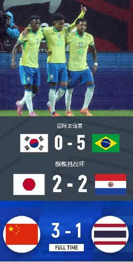 当日本队对阵巴拉圭、韩国队对阵巴西队,都在忙着为明年世界杯热身之时,我们的国足还在全球选帅,备战下下届世界杯预选赛! 当日本队2:2绝平巴拉圭之时,当韩国队0:5惨败巴西队之际,我们的U22国足3-1逆转战胜泰国U23! 当我们还在嫌弃卡纳瓦罗水平不够之时,卡纳瓦罗已经出任乌兹别克斯坦主帅,带队征战美加墨世界杯! 当日本队喊出世界杯夺冠之时,我们都在笑话日本人口出狂言、不自量力!但日本人连50个诺贝尔奖计划都快提前实现了! 韩国队被巴西队灌了5个球,差距明显!似乎又成了笑料。 但我却认为韩国人一定为拥有孙兴慜、李刚仁、金玟哉这样的世界顶级球员而自豪! 韩国队0:5惨败巴西队,维尼修斯、罗德里戈、库尼亚、埃斯特旺、卡塞米罗、吉马良斯、加布里埃尔、米利唐,能让巴西队这些世界顶级球员全主力出场,对某支国足的球迷来说,岂不是一种奢望! 2002年世界杯,国足被巴西队4:0击败,没有人笑话当时的国足主帅米卢和他率领的那支国家队! 重要的不是输了几个球! 重要的是你与什么样的人为伍! 当泰国、越南、缅甸、柬埔寨,........,都成了劲敌,还有什么可说的呢! 唉! 差距,实在是太大了!