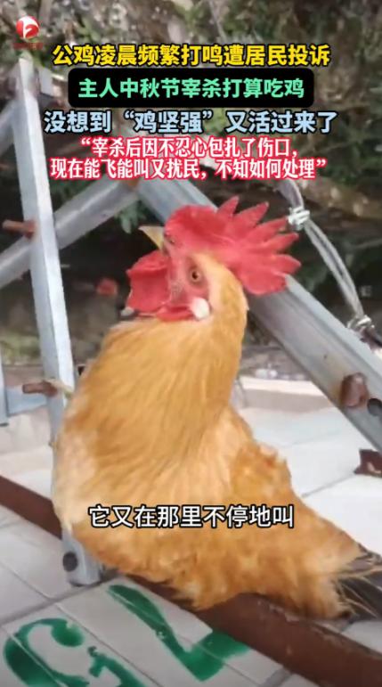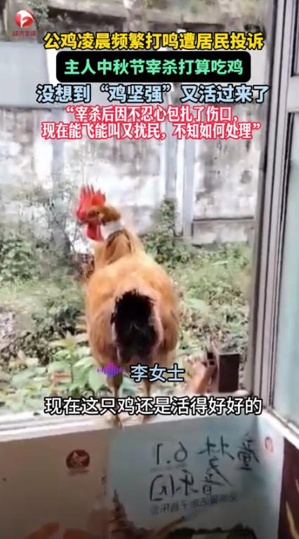 “活久见!”10月7日,贵州贵阳,一女子养的公鸡喜欢凌晨2点打鸣,邻居们苦不堪言,趁着过节,女子一狠心将鸡给杀了,放了半碗鸡血,水烧开后准备拔毛,没想到鸡却活了过来,女子于心不忍,就买来药和扎带给包扎好,现在鸡仍活蹦乱跳的。网友:公鸡中的战斗鸡! 当时李女士家养了很多鸡,像很多农村家庭一样,鸡成了家里的一部分,既能提供鸡蛋,又不需要太多打理,可问题就出在她养的这只公鸡身上,别人家的鸡早上打鸣也就算了,偏偏这只公鸡每天凌晨2点就开始打鸣,声音还非常大,大的让周围邻居连觉都睡不好。 之前邻居们已经找李女士反映过好几次,李女士心里也明白,这只公鸡早上叫得实在是太狠了,自己每天早上被吵醒也算了,连邻居们的生活都受影响了。 眼看着中秋节来临,李女士决定忍痛把这只公鸡杀掉,给自己和邻居们争个清静,她心里想着,打算过节时做顿大菜,顺便解决这只捣蛋的公鸡。 于是李女士下了决心,把那只鸡给捉了起来,随后她准备好所有工具,水烧开,手边已经放好了鸡血,准备开始处理这只公鸡。 她原本想一了百了,把它给处理了,至少不会再受到公鸡打鸣的干扰了,结果出乎意料的事情发生了——公鸡在放完血后,那只公鸡竟然复活了!眼看着那只公鸡摇摇晃晃的站了起来,李女士当时整个人都懵了。 这一幕让李女士心里五味杂陈,她本来是决定“杀鸡祭月”,没想到一不小心就让这只公鸡重新活了过来。 看着大公鸡眼神中那份委屈和恐慌,李女士心软了,她不忍心再下手,决定把这只鸡暂时收留,买了些药和扎带,把它包扎好,继续养着。 公鸡似乎也意识到了自己已经逃过一劫,它恢复得很快,每天依然按时打鸣,活蹦乱跳的,似乎变得更加精神了。 不过公鸡每天依旧不改早晨打鸣的“恶习”,周围的邻居们又开始抱怨了,李女士也无奈,心里明白,这只公鸡无论怎么“折腾”,它依旧是家里的一部分,既然命运让它回来了,那就再给它一次机会。 甚至它还变得更加“精明”,每次吃完东西后就飞得很远,生怕再次被李女士捉住。 这一事件在网上引发了不少讨论,网友们调侃这只“活过来的公鸡”是“公鸡中的战斗鸡”,简直比人类还坚强。 很多人都感慨,这只公鸡的经历太过传奇,让人难以想象,李女士的举动也引发了一些网友的共鸣,许多人认为,在看到公鸡恢复过来的一刻,李女士的心软是可以理解的。 就像许多养宠物的人一样,养出了感情,看到它的命运可能会发生转折时,很多人都会做出同样的决定——即使它以前给你带来了麻烦。 这件事情带给人的启示其实不只是在动物的生命力上,它还让人反思了养殖动物的责任感,每一只动物,无论是为了食物还是其他原因,都有它的生命价值,而这份价值常常被我们忽视。 在生活中,我们常常因为一时的烦恼做出决定,但当我们回头看到这一决定可能带来的意外后果时,又不得不重新评估。 最终这只公鸡仍然像以前一样早起打鸣,而李女士也没有再做出激烈的决定,她把它视为家中的一员,尽管它的“战斗力”十足,却也成了生活中的一部分,或许这就是生活的另一种智慧吧。 对于这件事情,大家有什么看法? 信息来源:《公鸡凌晨频繁打鸣遭居民投诉,主人中秋节宰杀打算吃鸡,没想到“鸡坚强”又活过来了》AHTV第一时间