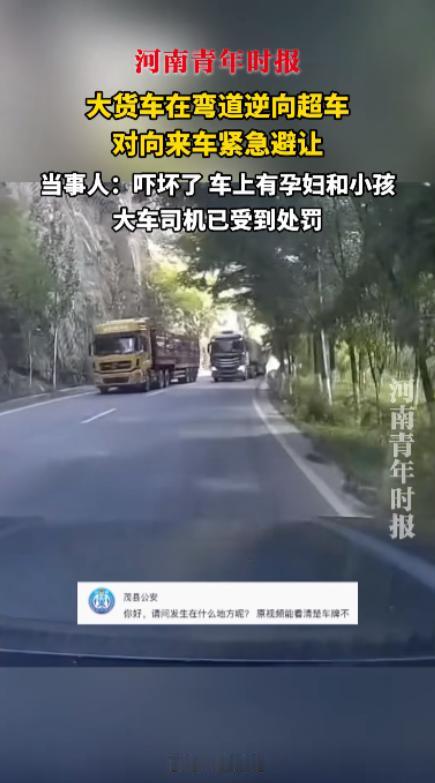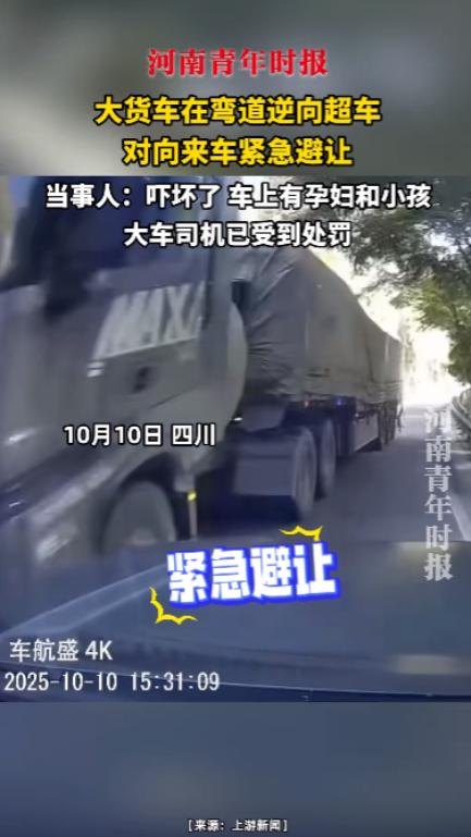 “必须严惩!”10月10日,四川茂县,一男子开车带着孕妇和孩子在路上行驶时,经过一个弯道突然冲过来了一辆大货车,更可怕的是这辆货车竟然在弯道逆行超车,幸好男子及时打方向躲到护栏旁边,否则后果简直不堪设想,网友:这样的司机根本不会开车! 当时一男子开车载着怀有身孕的妻子和年幼的孩子,行驶在回家的路上,车辆行经一个弯道时,对面车道突然毫无征兆地冲出一辆正在逆行超车的大货车。 当时男子的行车记录仪完整拍下了这个过程:大货车庞大的车身完全占用了对向车道,也就是男子车辆正常行驶的车道,迎面疾驰而来,情况万分危急。 男子几乎是凭借本能反应,猛地向右急打方向,将车紧紧贴在了路边的护栏旁,才勉强避让过去,大货车带着一阵风声,几乎是擦着小车的左侧后视镜呼啸而过,场面令人窒息。 事后男子心有余悸地回忆,当时车上坐着孕妇和孩子,她们的身体远比普通人要脆弱,如果真的发生正面碰撞,后果完全不堪设想,现在想起来后背还会冒冷汗。 这段记录下生死瞬间的行车记录仪视频后来被传到网上,迅速引发了众多网友的关注和愤慨,许多网友留言指责大货车司机的危险行为,有人直言:“这样的司机根本不会开车,视人命如草芥!” 也有经常跑长途的货车司机在评论区表示,虽然绝大多数大车司机是谨慎和守规矩的,但确实存在少数司机,为了赶时间或多拉快跑,养成了非常危险的驾驶习惯,成了道路上的“隐形炸弹”。 从视频画面中可以清晰看到,事发路段是典型的山区双向两车道,道路本身并不宽敞,弯道急,视线存在明显的盲区和死角,在这样的地理环境下,选择超车本身就是极具风险的行为,更何况是体型庞大、制动距离更长的大货车。 据当事男子描述,他当时刚拐进弯道,就看见这辆大货车压着道路中心的实线,甚至完全越过实线,占用他的车道进行超车动作。 而当时男子车道前方不远处,还有另一辆正常行驶的大货车,这使得道路空间更加捉襟见肘,留给他的反应时间和空间都微乎其微,那种突如其来的压迫感和无助感,只有亲身经历者才能深刻体会。 当时他采取的紧急避让措施是当时唯一可能避免碰撞的选择,尽管这样做也让自己的车辆险些刮擦到右侧护栏。 事件在网络上发酵后,很快引起了当地交警部门的高度重视,警方迅速介入调查,并很快核实了情况,最终涉事的大货车司机因其实施的“弯道超车”和“逆向行驶”等多项危险驾驶行为,依法受到了严厉的行政处罚,包括罚款和驾驶证记分。 同时交警也对其进行了严肃的交通安全警示教育,强调了这种行为的极端危险性,交警部门在接受咨询时也再次向公众明确,在弯道、坡顶等视距不良的路段,法律是明令禁止超车的。 这是考取驾驶证时最基本的安全常识,也是科目一和科目四理论考试中反复强调的重点内容,任何司机都不应以任何理由触犯这条安全红线, 那么为什么总有个别司机,尤其是职业大车司机,会明知故犯,做出如此危险的驾驶动作呢? 这背后通常有几个现实因素,首先是经济和时间压力,不少货运行业的运营模式与时间、趟次紧密挂钩,司机在长期疲劳驾驶和赶交货期的压力下,容易产生侥幸心理和冒险冲动,认为“抢这几秒钟也许就能省下时间”。 其次是长期驾驶形成的麻痹思想和过度自信,有些司机自恃经验丰富,对路况和自身技术判断过于乐观,低估了突发状况的概率和严重后果,再者可能也存在企业对司机安全管理的缺失,对效率的追求有时凌驾于安全之上。 但所有理由在鲜血和生命面前都显得苍白无力,一个再浅显不过的道理是:在危险路段抢出的那几秒钟,一旦发生事故,付出的代价可能是几条人命和多个家庭的破碎。 因此,对像这次茂县大货车弯道逆行超车这样的严重违法行为,进行依法严惩和公开曝光,是非常必要和及时的。 这不仅能惩戒违规者,更能警示教育广大驾驶员,但归根结底,处罚和教育都只是外部手段,真正的安全,源于每一位手握方向盘的司机内心对规则的自觉遵守、对生命的无限尊重。 对于这件事情,大家有什么看法? 信息来源:《大货车在弯道逆向超车对向来车紧急避让,当事人:吓坏了,车上有孕妇和小孩》上游新闻