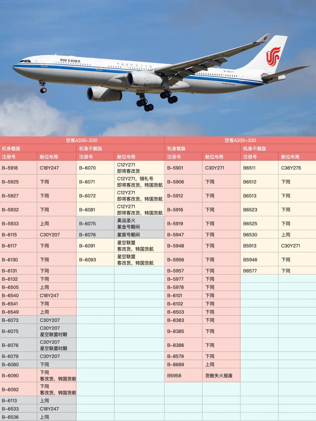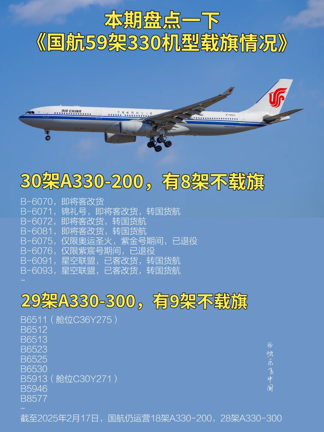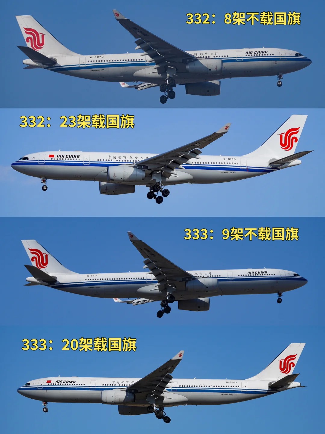 本期盘点一下《国航运营的59架330系列机型的飞机载旗情况》