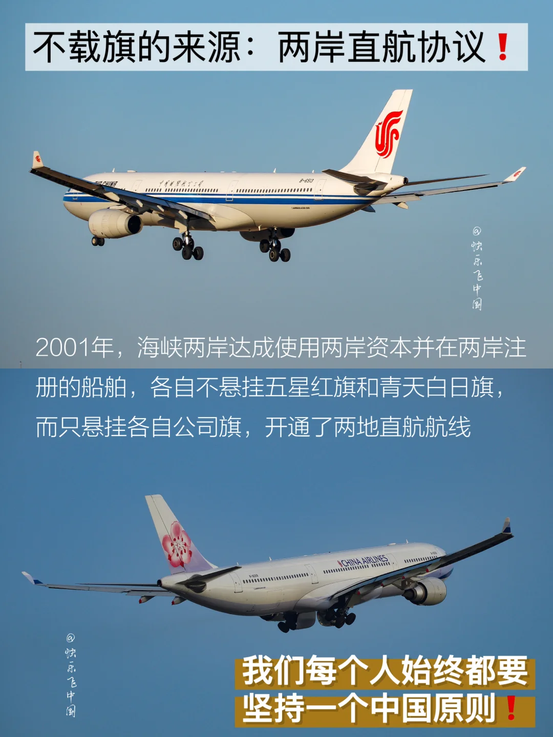 根据内地和台湾两岸直航的协议,国航和华航飞往两边的飞机不载旗(现在华航飞机均已无旗)
