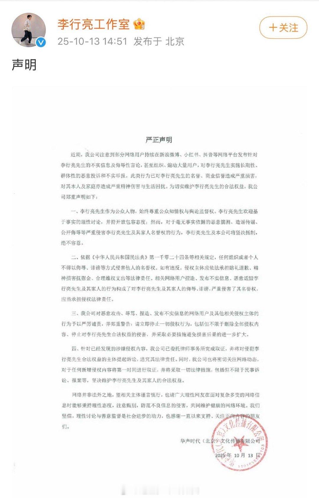 李行亮发微博长文维权 看李行亮告黑惊呆了,这年头大家伙儿戾气都那么重吗,动不动就网暴人。