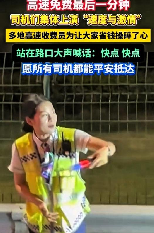 高速免费最后1分钟,司机们是集体上演“速度与激情”,多地收费员也是操碎了心大喊:快点,快点!! 为了省几十高速费,司机在免费最后1分钟猛踩油门?这“生死时速”真不值啊! 国庆收假那晚,高速口全是赶免费末班车的司机,连收费员都急得大喊“快点”,场面看着热闹,实则全是隐患。 为了省这点钱,车辆又多,万一有车辆超速、加塞、猛打方向,一旦出点事,那是修车费、医疗费可是要比过路费多得多。 其实交警早就给过办法:快到免费结束时,先下高速再上来,既享优惠又安全。可总有司机觉得“我赶一赶就到了”,把安全抛在脑后。 高速免费是福利,不是催命符,真没必要拿自己和别人的安全赌。愿所有司机都平安抵达。高速免费政策 浙江高速收费口 国庆高速收费口