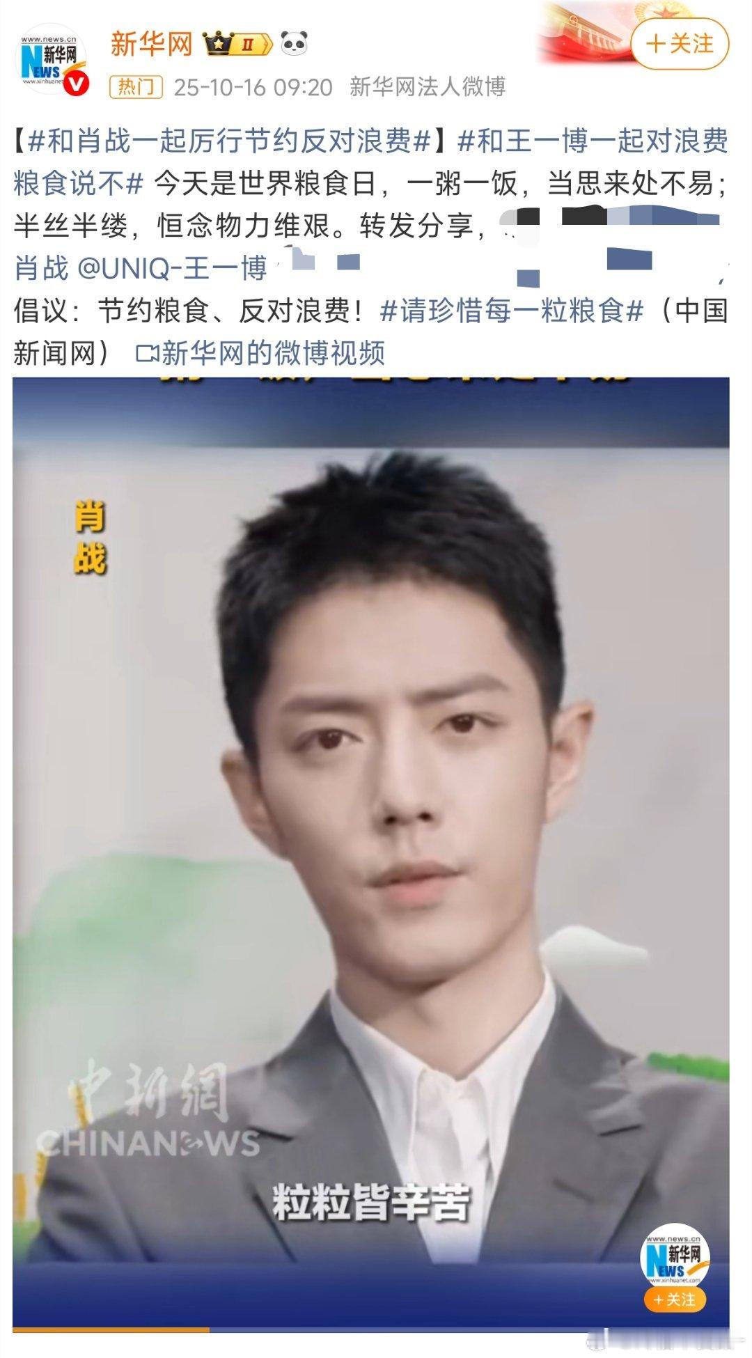 和肖战王一博一起节约粮食 反对浪费՞˶・֊・˶՞ 和王一博一起对浪费粮食说不和肖战一起厉行节约反对浪费