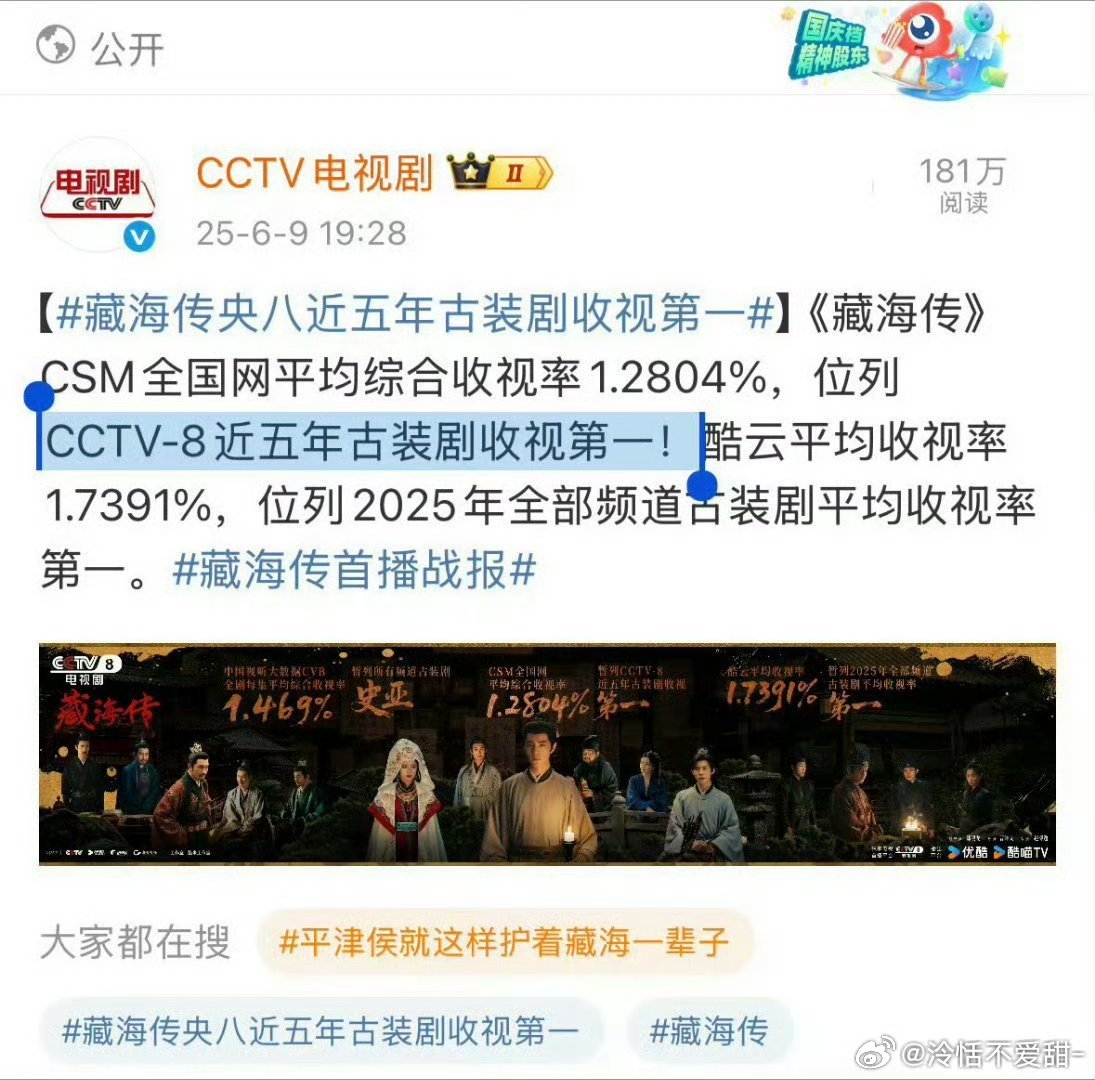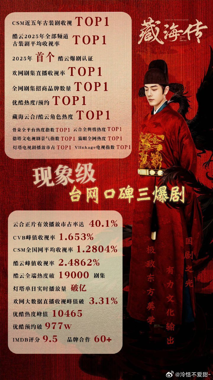 2025年有爆剧吗只知道《藏海传》全球大爆剧登陆Disney+覆盖190多个国家和地区,中国台湾地区连续52天霸榜,韩国SBS打破25年华剧禁令引入黄金档,在KT Genie TV海外剧集榜单中连续一周蝉联冠军😎💅🏻