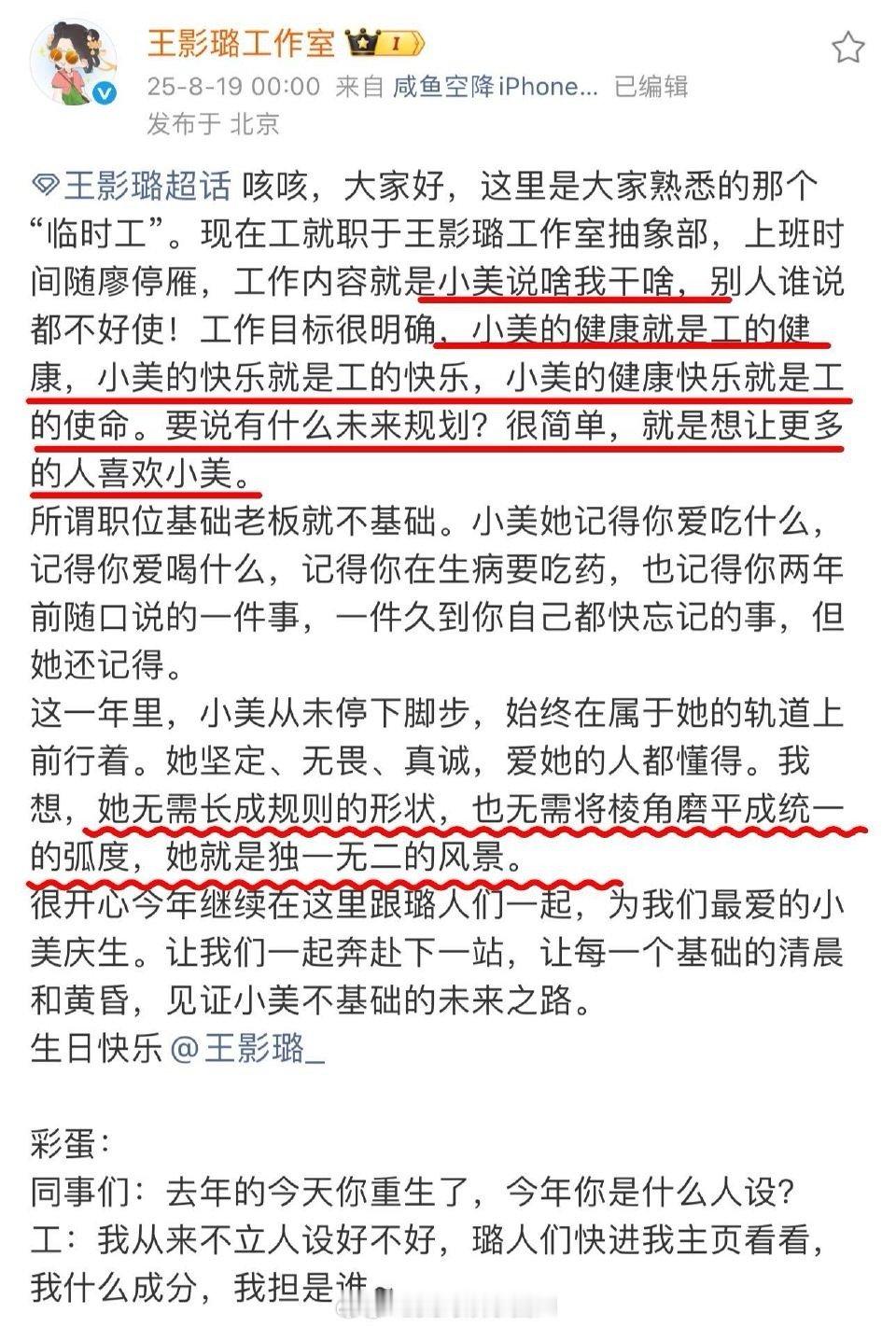 王影璐工作室内娱养成系 终于懂内娱养成系工作室该有的样子!王影璐工作室真诚听劝,用爱托举她,从日常记录到剧宣,精准结合角色与她的特质,让更多人看见她的付出。