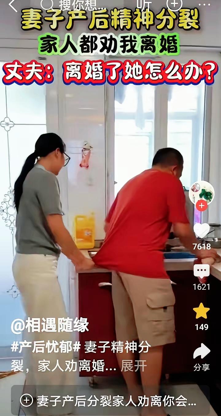 刷到这个视频时,我直接破防了! 产后精神分裂的妻子攥着丈夫衣角,他走到哪就跟到