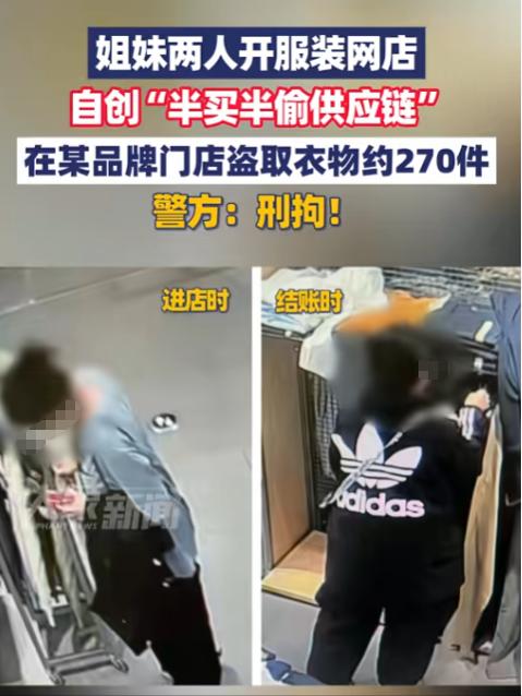“胆子真大!”10月20日报道,上海,一对亲姐妹开服装网店,竟然自创“半买半偷”的方式进货,两人在某品牌店前前后后盗取270多件衣服,直到店内员工盘点才被发现,网友:这供应链风险有点高啊![紫薇别走] 每次盘点库存时,衣服的数量总是对不上,少的不多,但持续了好几个月,监控里没有明显的异常,顾客都正常试衣、付款、离开,这种“温水煮青蛙”式的损失让她不得不报警求助。 警方调取监控后,有位女顾客进试衣间时穿着修身,出来时背部和腿部明显臃肿,走路姿态也变得僵硬,更蹊跷的是,她每次都会在前台买几件打折衣服,看起来像个普通顾客。 循着这条线索,民警锁定了一对姓兰的姐妹,当警方找上门时,发现她们正经营着一家专售该品牌服装的网店,库存里堆满了从未拆封的同款衣物,这对姐妹交代,她们的“进货渠道”确实特别每逢品牌打折,就去门店“半买半偷”。 这套方法让她们尝到了甜头,网店里的货源成本几乎为零,利润空间大得惊人,但纸终究包不住火,经警方核查,两人累计盗取衣物约270件,涉案金额接近8万元。 开网店确实面临货源压力,但合法渠道并不少,厂家直采可以绕过中间环节,成本直降,1688等批发平台上,同款商品的批发价往往只有零售价的一半,品牌尾货、库存清仓的折扣力度更大,有些甚至能低至市场价的三折。 那对上海姐妹在被捕后曾说,开始只是偷一两件试试,发现没被抓就越来越大胆,这种侥幸心理是很多人走向深渊的开始。 商业竞争再激烈,底线也不能突破,那些看似“聪明”的捷径,往往是通往牢狱的快车道,真正能让生意做大做久的,永远是诚信经营和合法运作,当你在货源成本上绞尽脑汁时,不妨多花些时间研究供应链优化、谈判技巧、品质把控,这些才是长久之计。 网友热评: “前后偷了270多件,这得‘叠穿’多少次啊,进出试衣间身材变化能不明显吗?也难怪监控里一眼就被警察看出来了。” “好好经营网店本来就是正经生意,偏偏要动歪心思,有这份‘坚持’和‘冒险精神’,花在正经选品和营销上,说不定早就做起来了。” “服装店,尤其是试衣间,真是防盗的薄弱环节。” “监控里看出身材变化这个细节抓得太准了!为警察的细心点赞,不然店家还得继续亏钱。” 如果你是开网店的,面对找货源的资金压力,你会通过什么正当方法来控制成本呢?欢迎在评论区分享你的高见和妙招! 信息来源:大象新闻