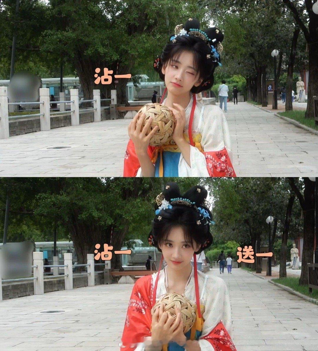 王影璐wink这一下 王影璐花絮甜度超标!吃菜团子、粘豆包超接地气,唐风造型明艳吸睛,转圈圈时飘带翻飞超灵动。双机位wink精准狙击心巴,慢切镜头放大可爱,不愧是饭撒小天才!