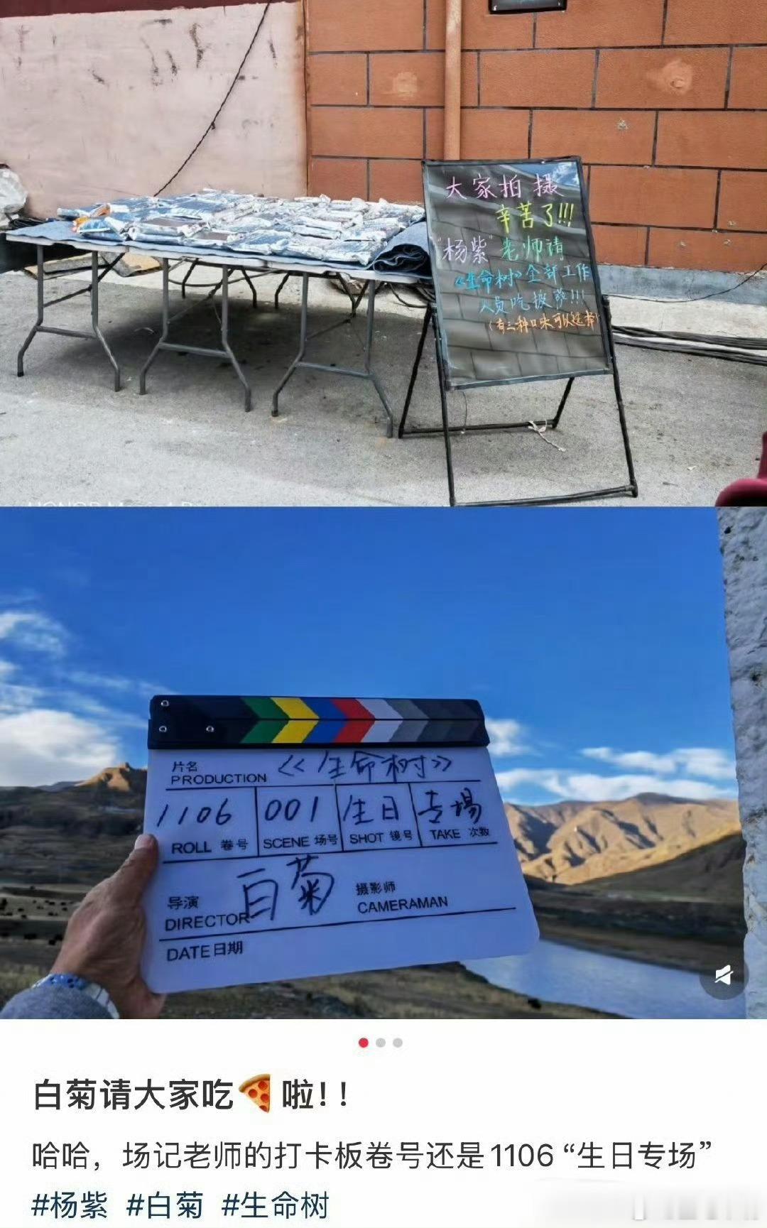 杨紫又请客生命树剧组吃披萨了杨紫又请客了!!没在片场也被暖到了!期待《生命树》早