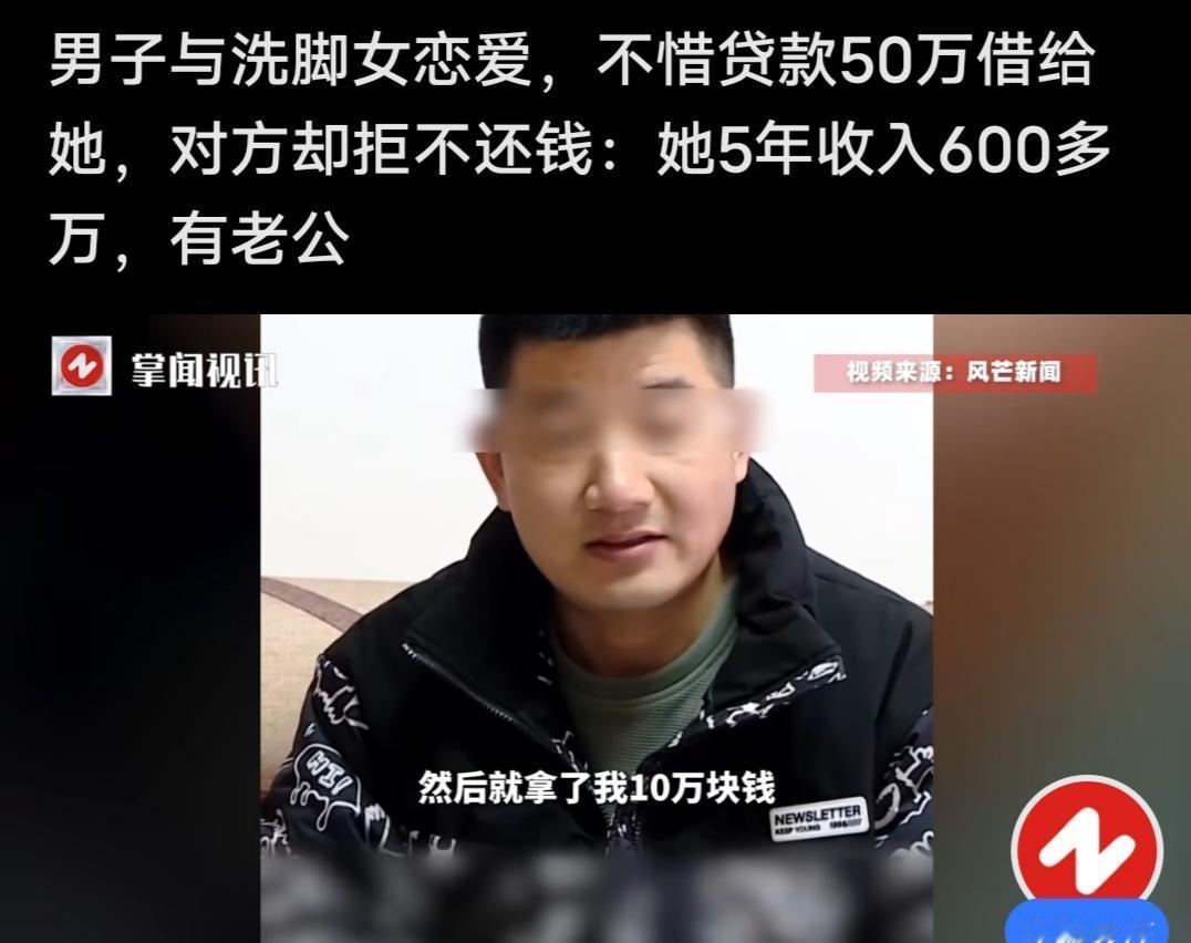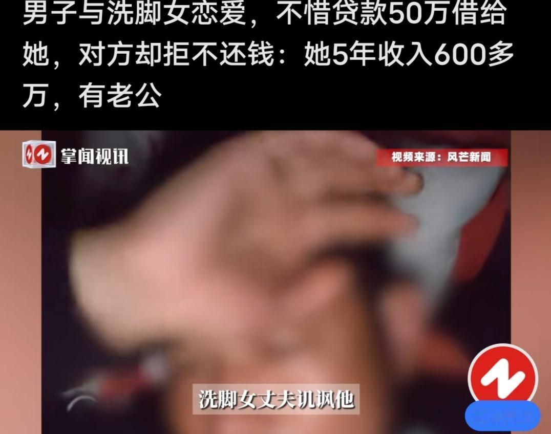 男子与洗脚女恋爱,不惜贷款50万借给她,对方却拒不还钱:她5年收入600多万,有老公! 这是相关媒体平台看到的报道,是最近几日被爆出来的事,在湖南长沙,佘先生在洗脚城认识了一个洗脚女,洗脚女告诉他自己是在那里做兼职,还告诉他自己是她第二个男人,当然,到底如何让佘姓男子相信她的,我们这些外行肯定是不懂的,后面顺理成章地发展成了情人关系,据说认识刚一个月后,那女的就跟佘先生借钱说工程上需要垫资,当时佘先生就给了10万,后来相处过程中不惜贷款借给她50万,直到另一名受害者打电话告诉佘先生,说这名洗脚女有丈夫,而且与多名男子有不正当关系,五年收了600多万。 佘先生问洗脚女什么事情是真的,那女的说跟他睡在一起是真的。他露宿街头,在洗脚女门口打地铺讨债,被洗脚女的丈夫讥讽,说破坏他家庭的人还找到他头上。佘先生了解到,这名洗脚女最近五年间换了很多个VX号,就是为了躲避她借过钱的债主,平时戴的卡地亚首饰用着华为折叠手机,却拒绝还钱。 这佘先生到底明白没有呢?带着卡地亚首饰,用着华为折叠手机却不还他钱,一开始本就是为了骗你,还还你?太天真了,就跟他开始相信她是个干净的人一样“天真”。 所以说,男人啊,家里掏心掏肺对他的,他觉得没情趣,埋怨人成天就知道在柴米油盐里打转,也不知道给他喂情绪价值,却不知,外面的之所以哪哪都能让你开心,不是因为其本身有这么好,只不过人家带着目的,只要能达到她的目的,要她做什么都可以,当目的达到,那么曾经让你看到的感受到的所有“美好”,都会变成笑话!