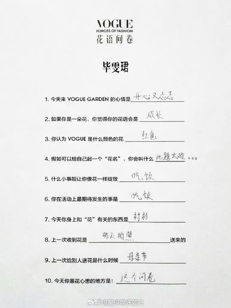 毕雯珺来vogue目标很明确 今日份快乐是毕雯珺给的!VOGUE问卷两大问题,他都用“吃饭”二字精准回应,帅气流露的同时满是干饭魂,这是把VOGUE盛典当成干饭现场了吧!
