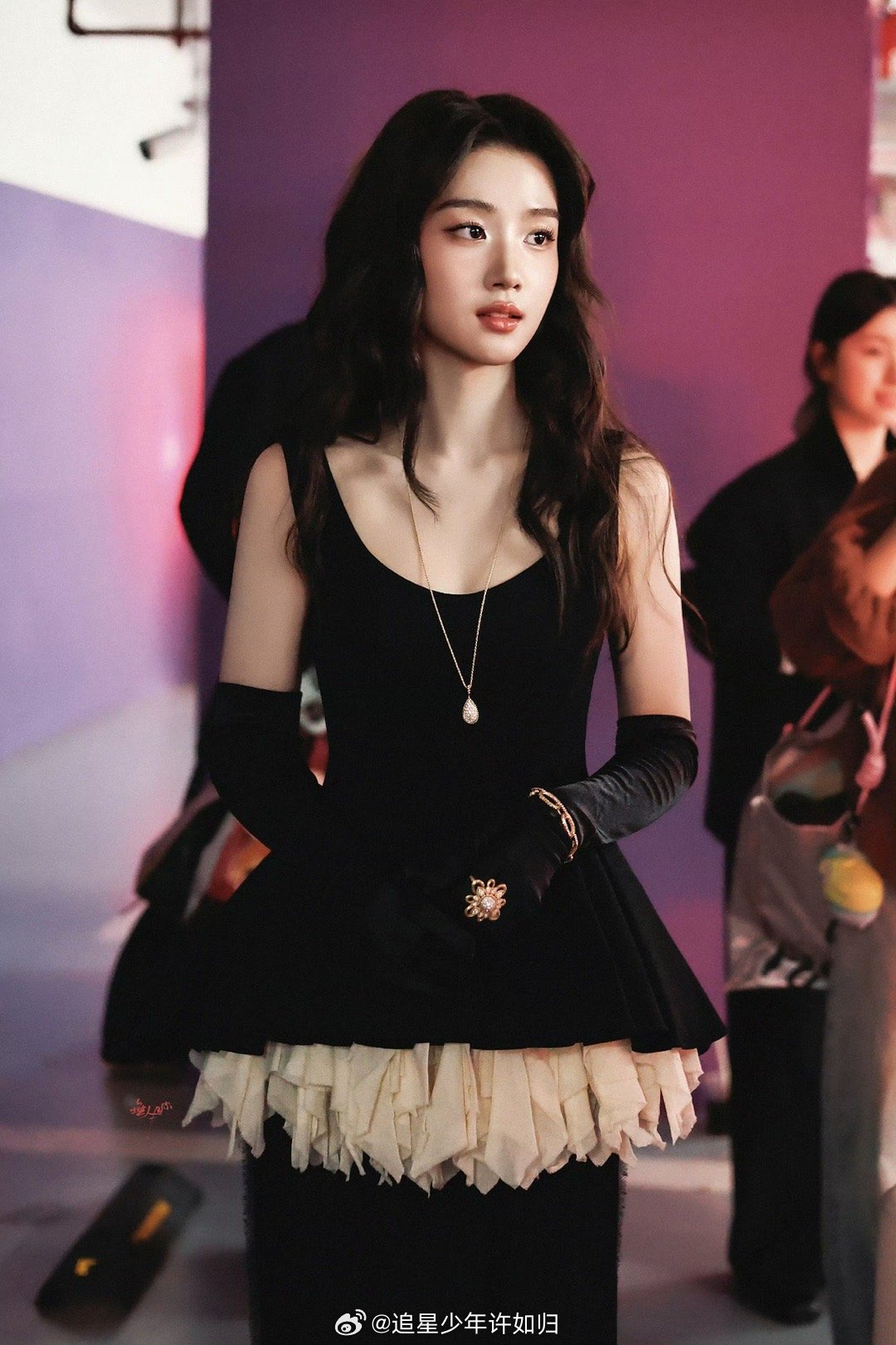 卢昱晓头上戴了好长一根针 卢昱晓的“头顶小世界”太会了!复古花苞裙搭配羽毛头冠,斜插的黑色长针添了冷冽质感,光影下的造型既灵动又高级,创意感和时尚度双在线!