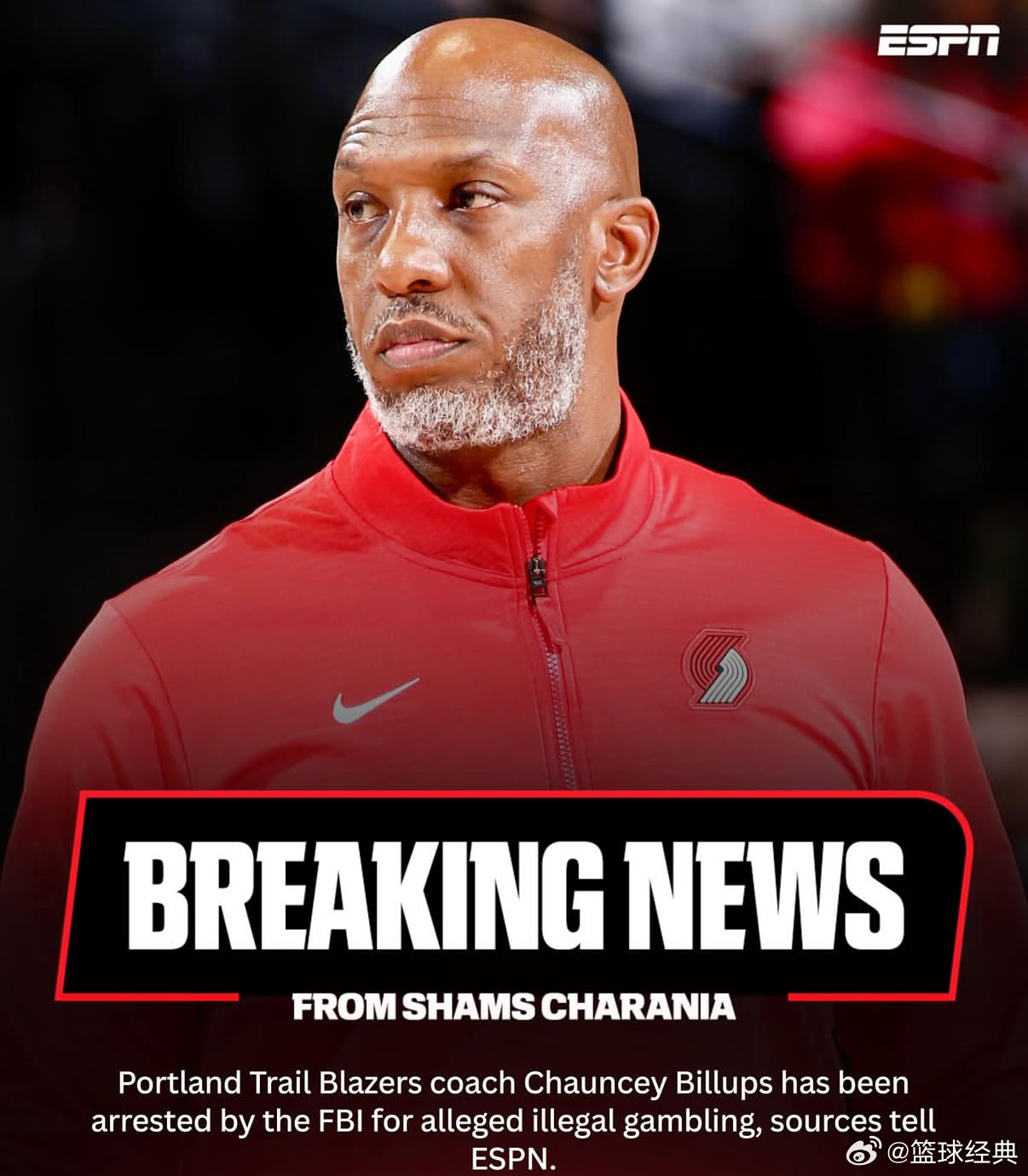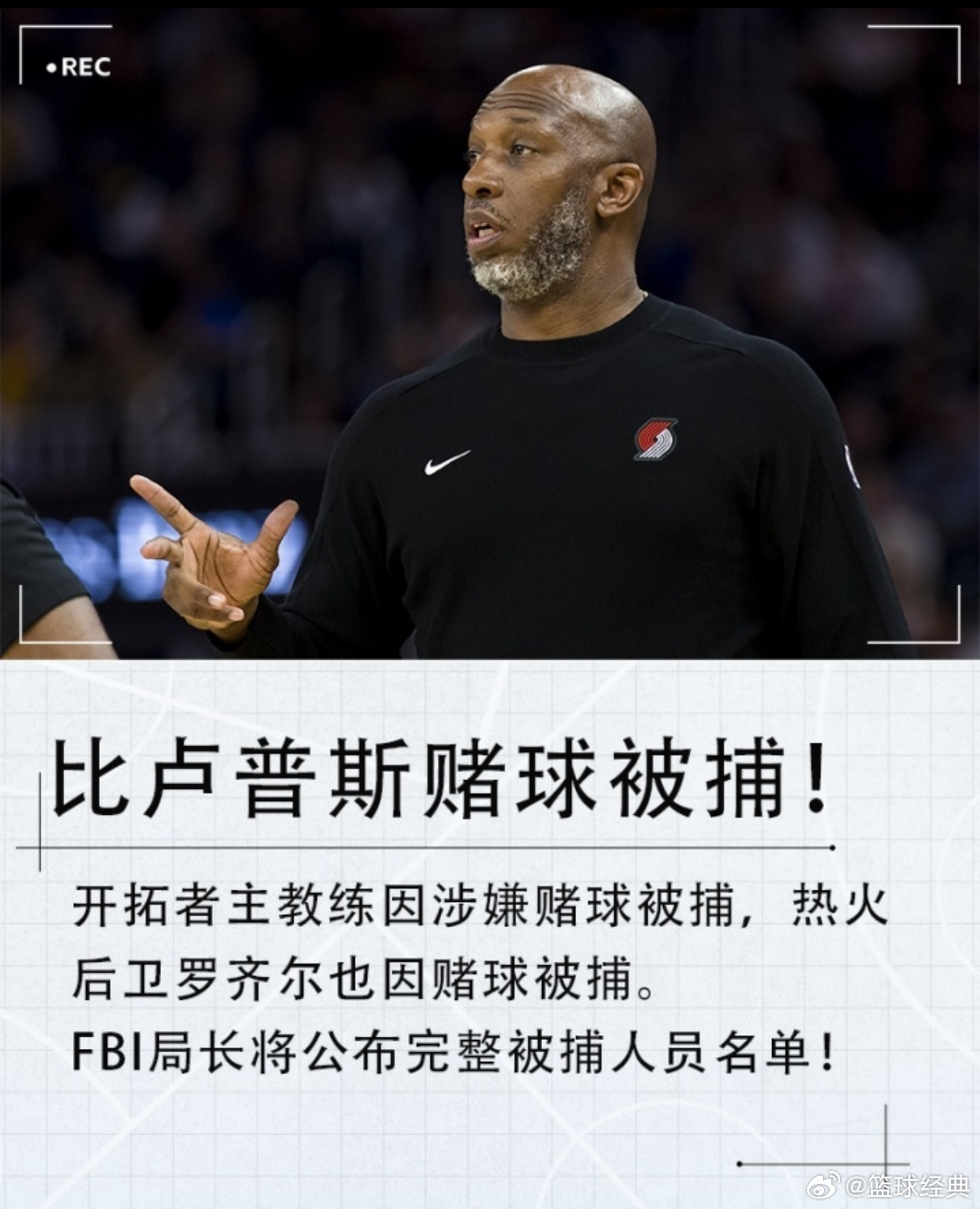 据NBC报道,两名高级执法官员称,开拓者主教练比卢普斯因参与赌球被逮捕!但与其执教的比赛无关。